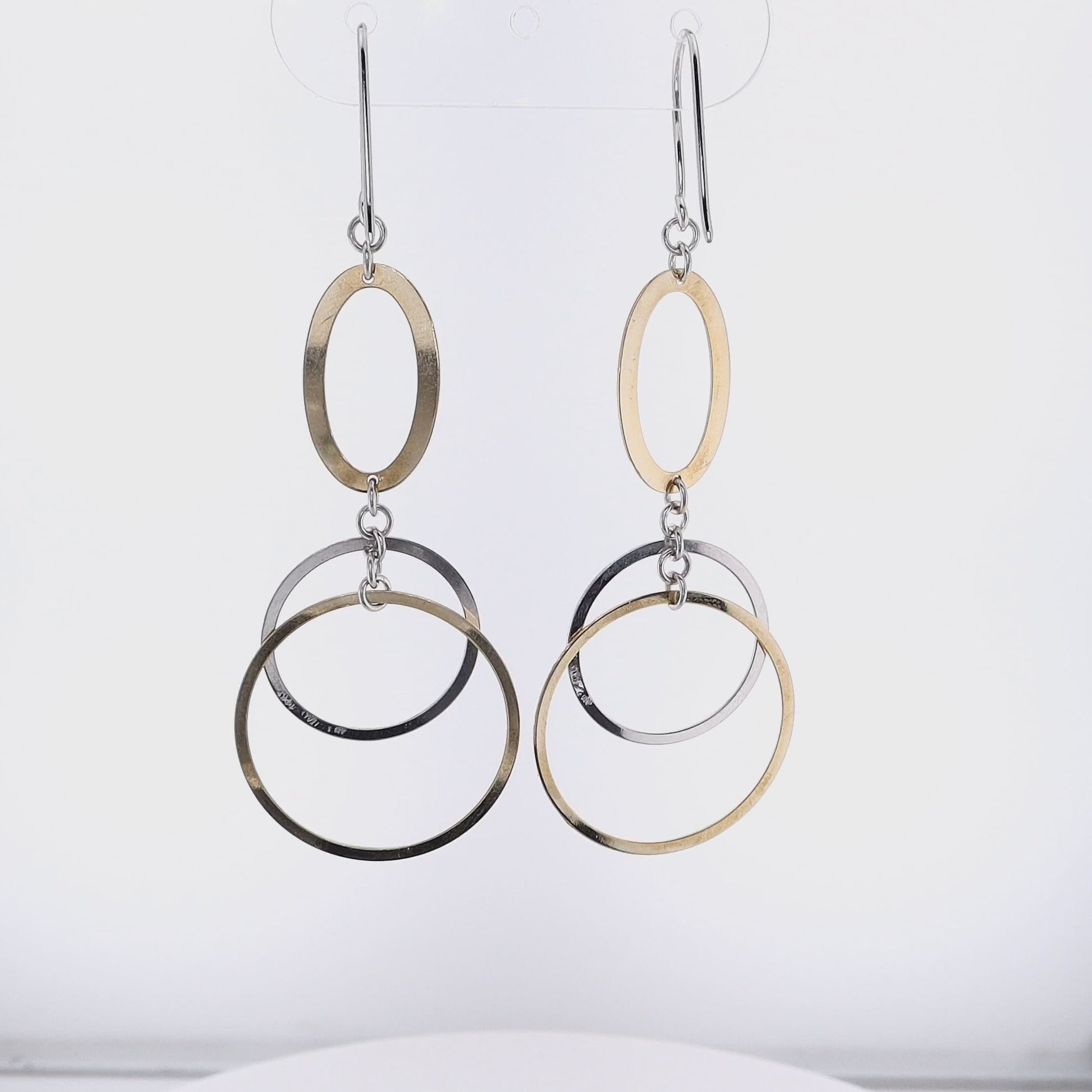 Estate 14 Karat Two-Tone Dangle Oval Double Circles Fish Hook Earrings