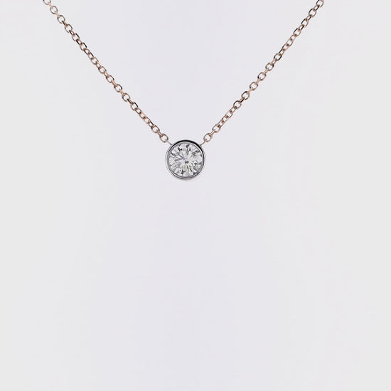 Estate 14 Karat Two Tone White Gold Solitaire Diamond Pendant Rose Gold Chain Necklace