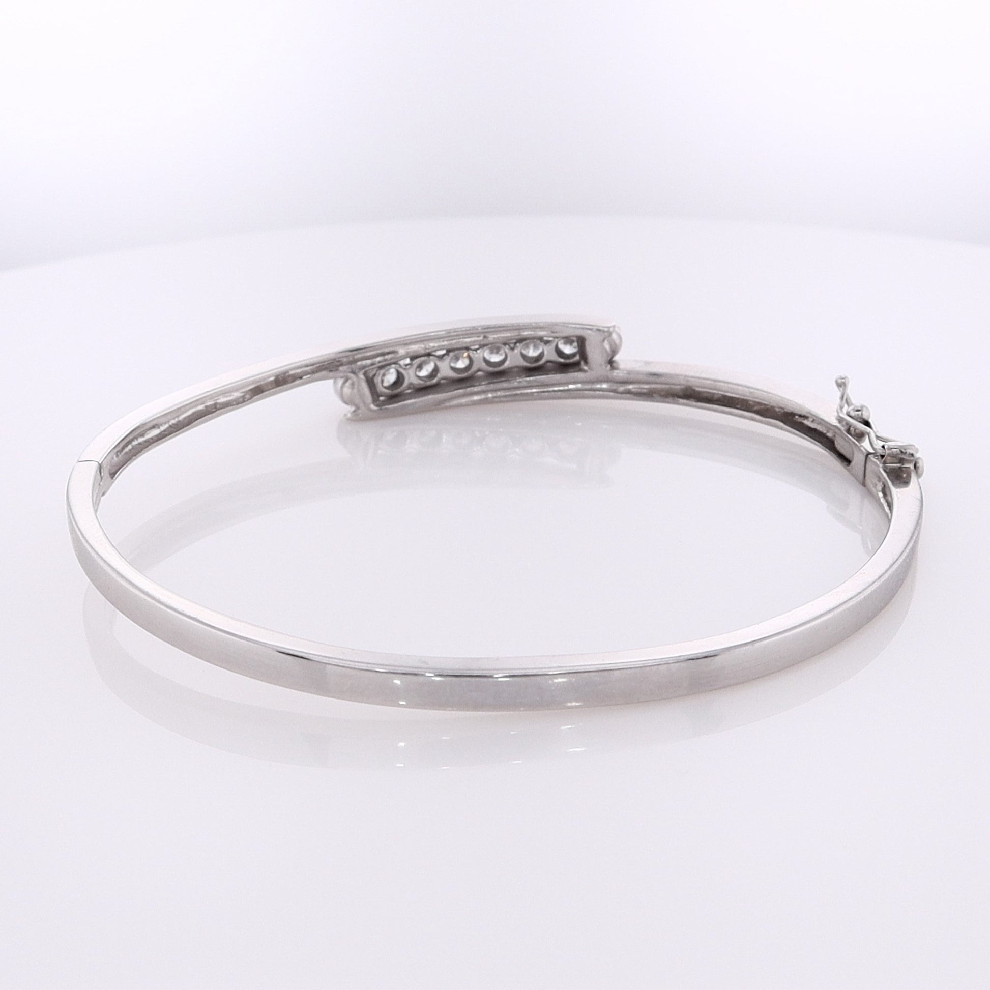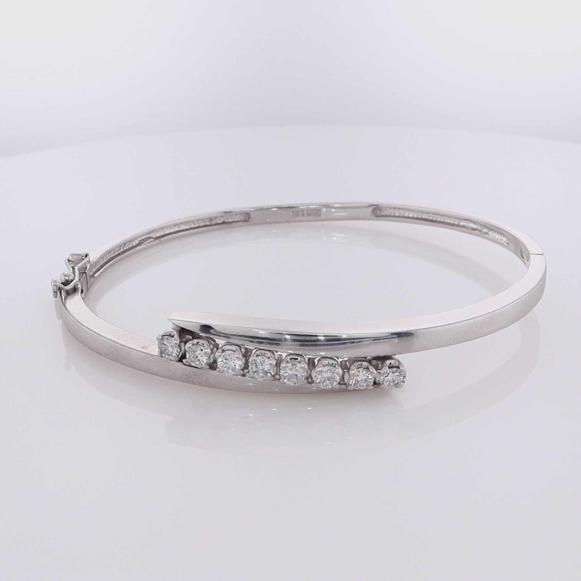 Estate 14 Karat White Gold Bypass Design Diamond Hinged Bangle Bracelet