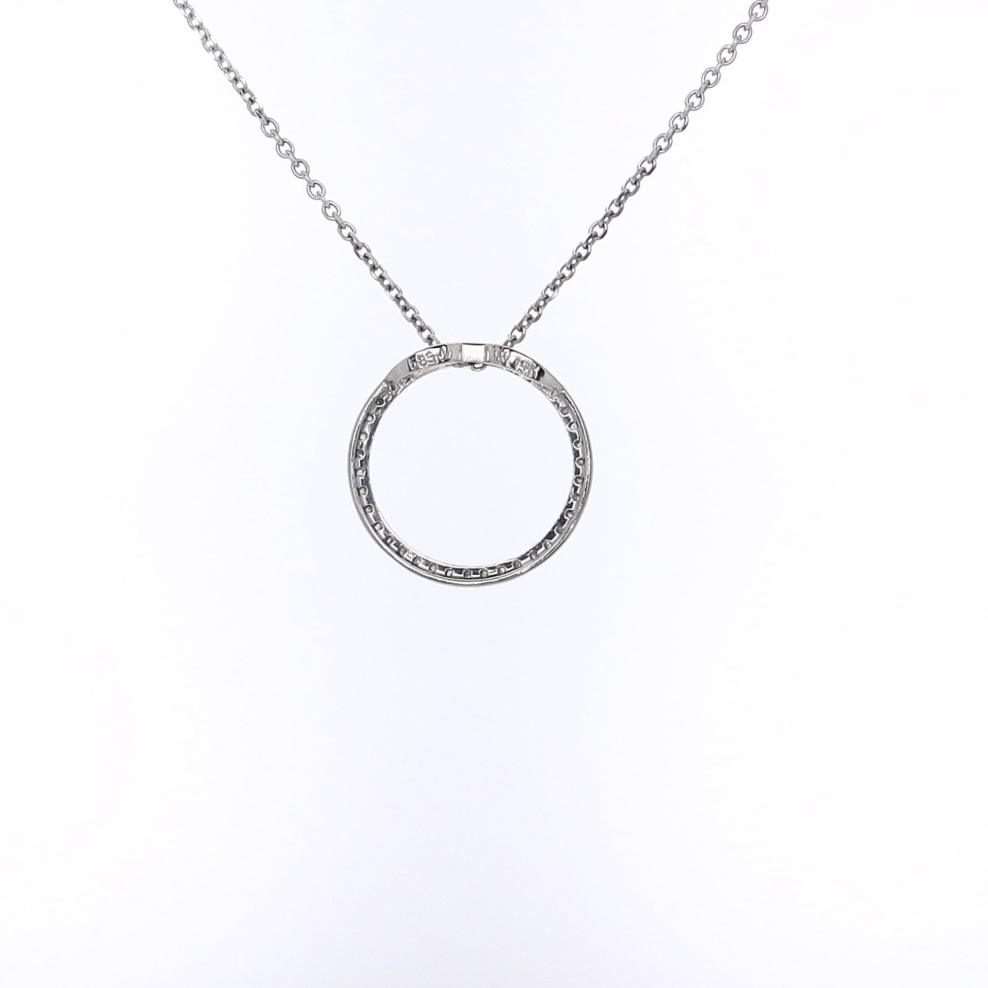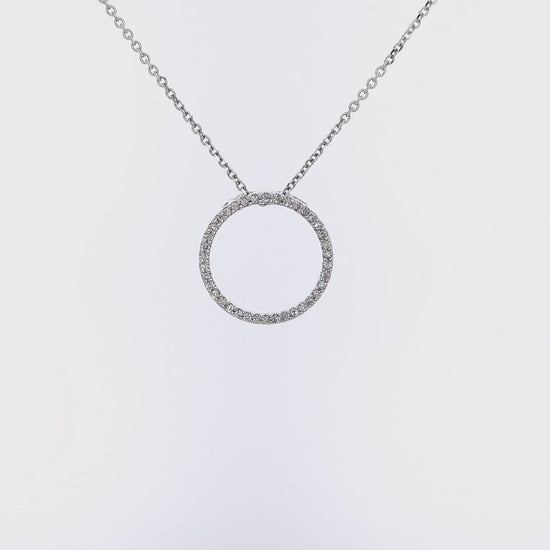Estate 14 Karat White Gold Circle Diamond Pendant Necklace