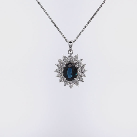 Estate 14 Karat White Gold Diamond and Sapphire Pendant Cable Chain Necklace