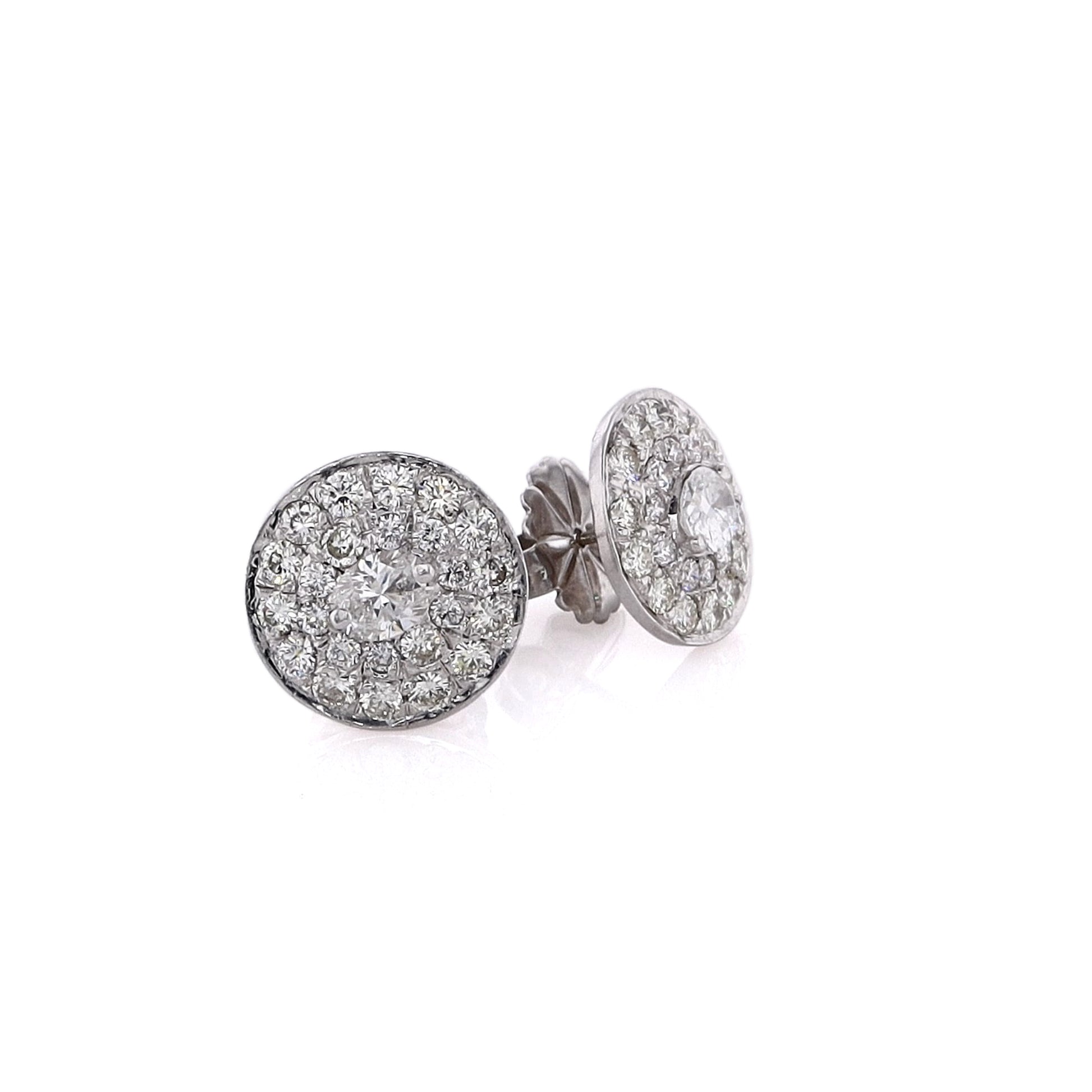 Estate 14 Karat White Gold Diamond Disc Earrings