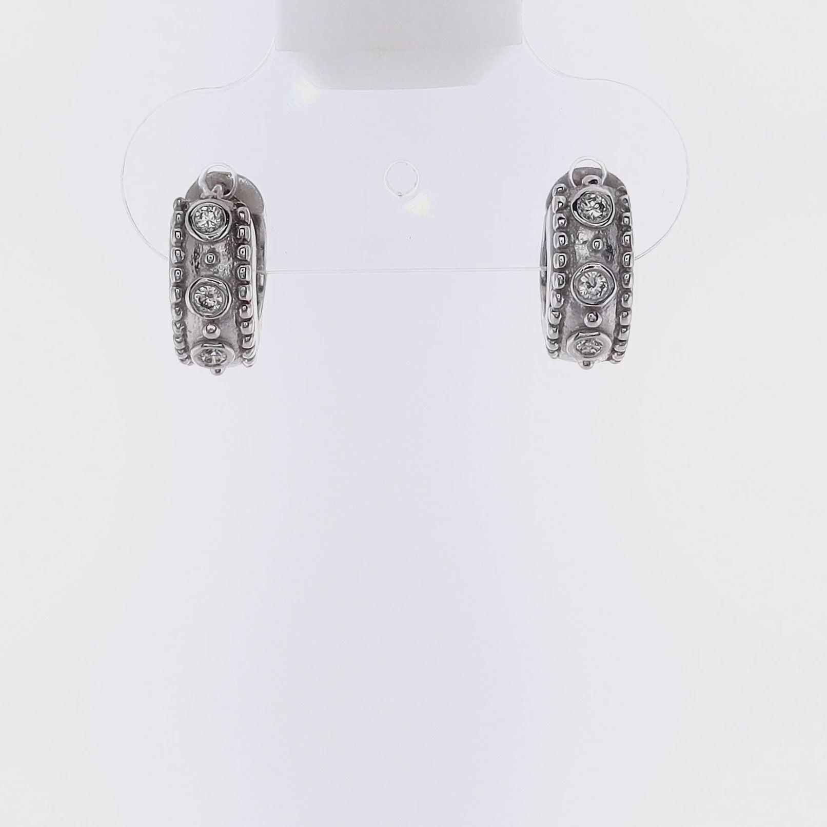 Estate 14 Karat White Gold Diamond Huggie Hoop Earrings