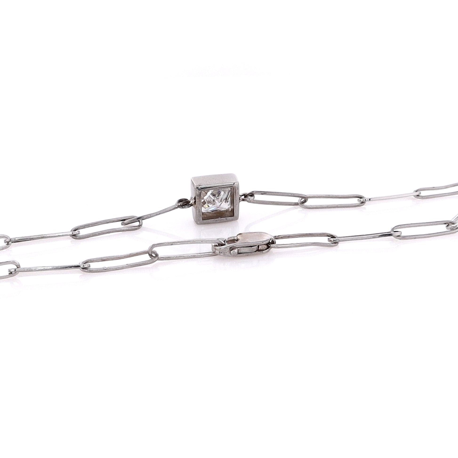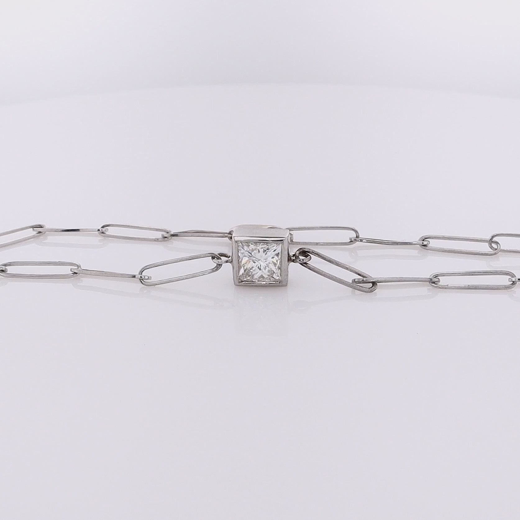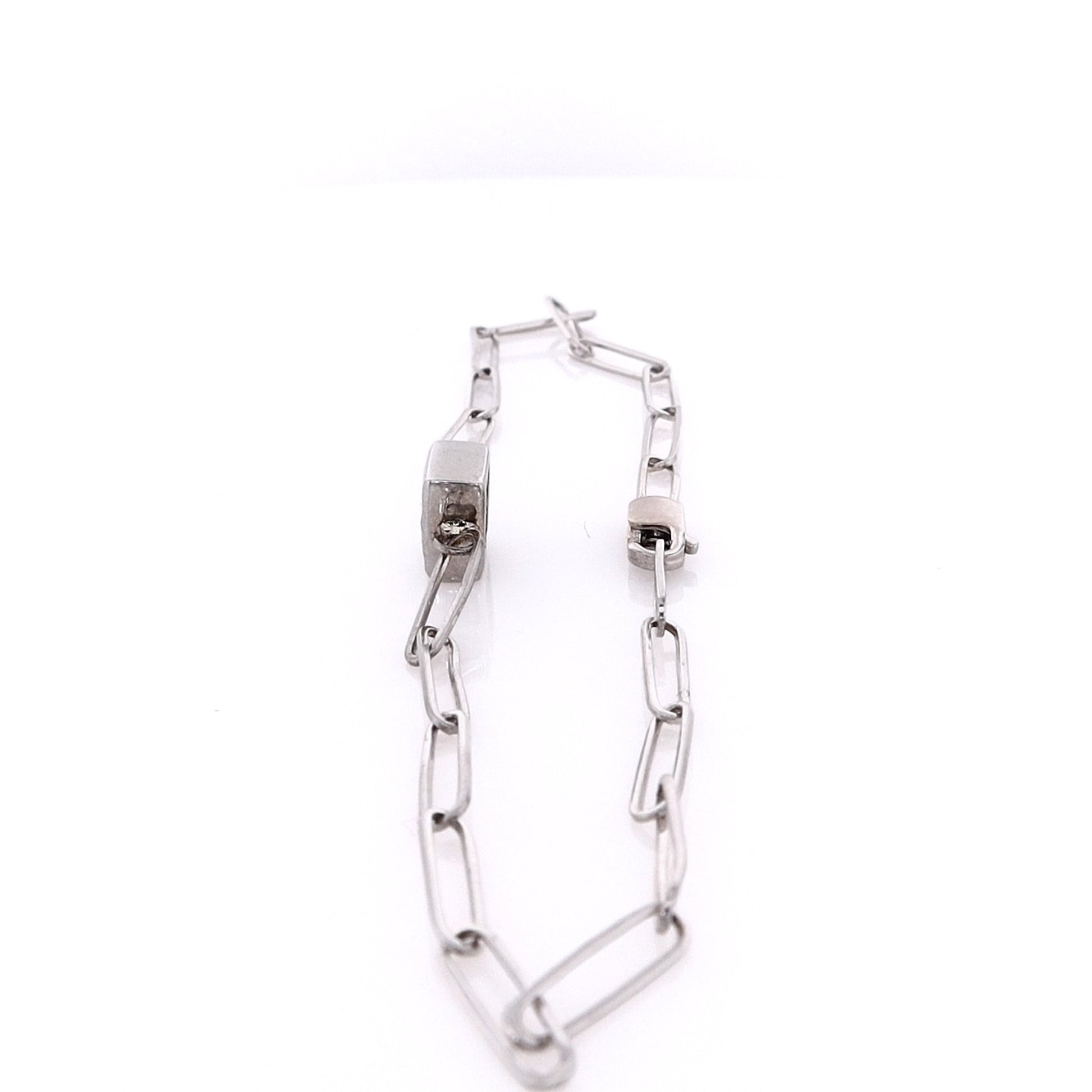 Estate 14 Karat White Gold Diamond Oblong Link Bracelet