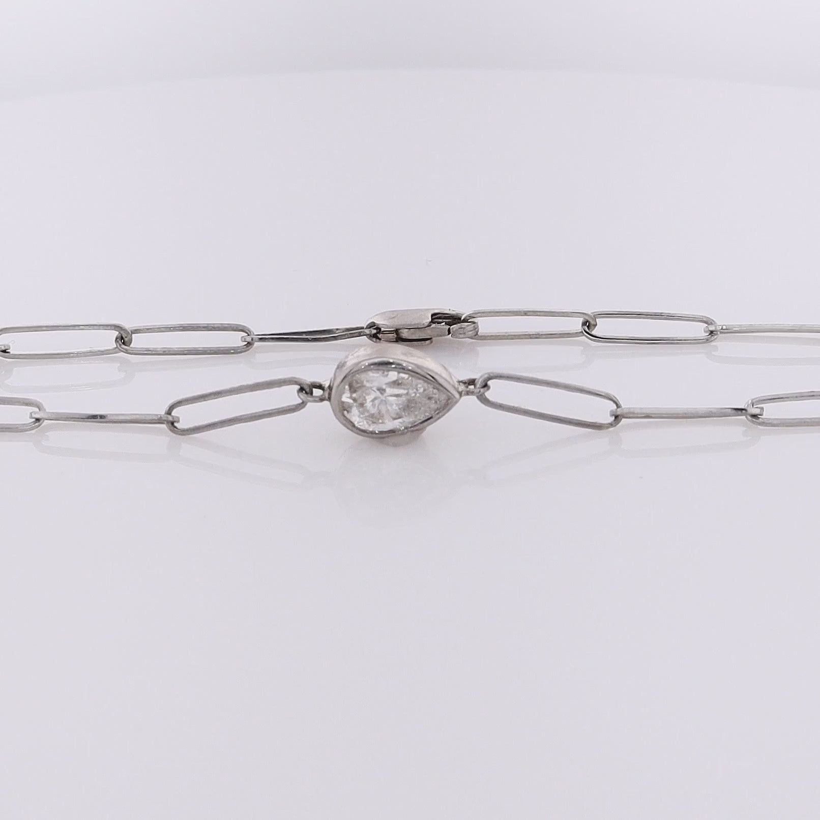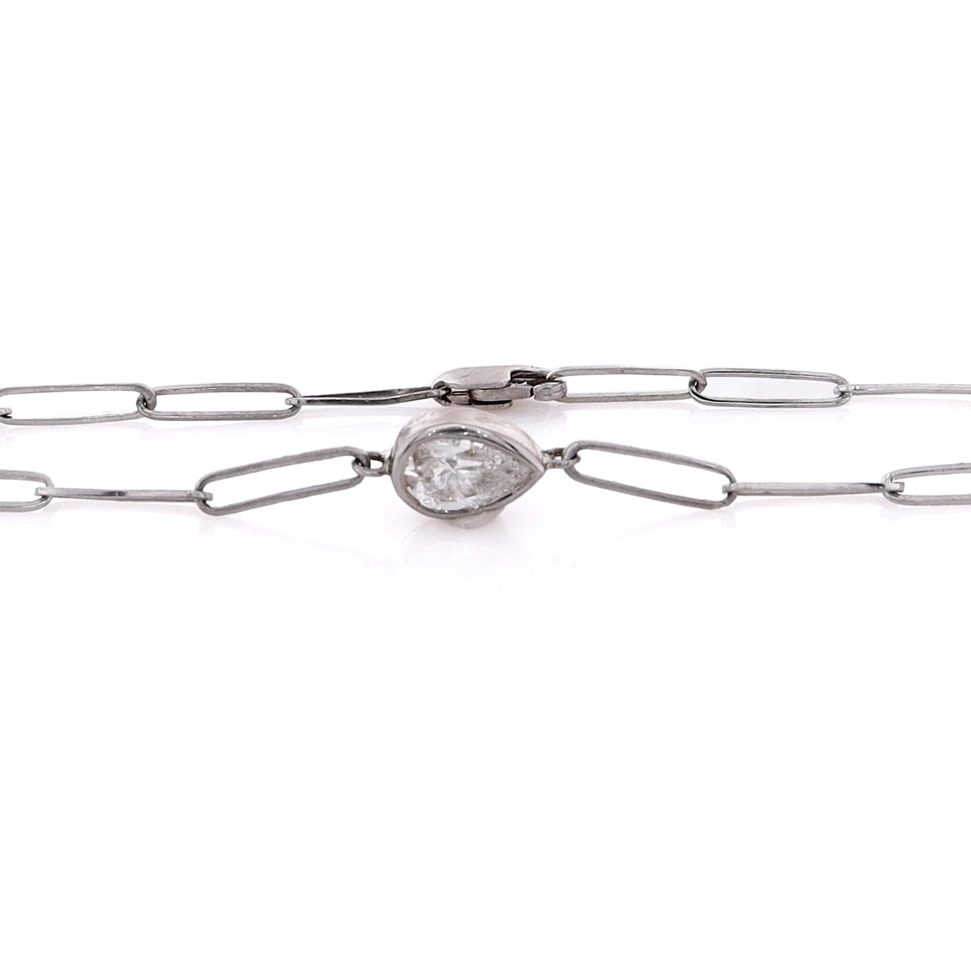 Estate 14 Karat White Gold Diamond Oblong Link Bracelet