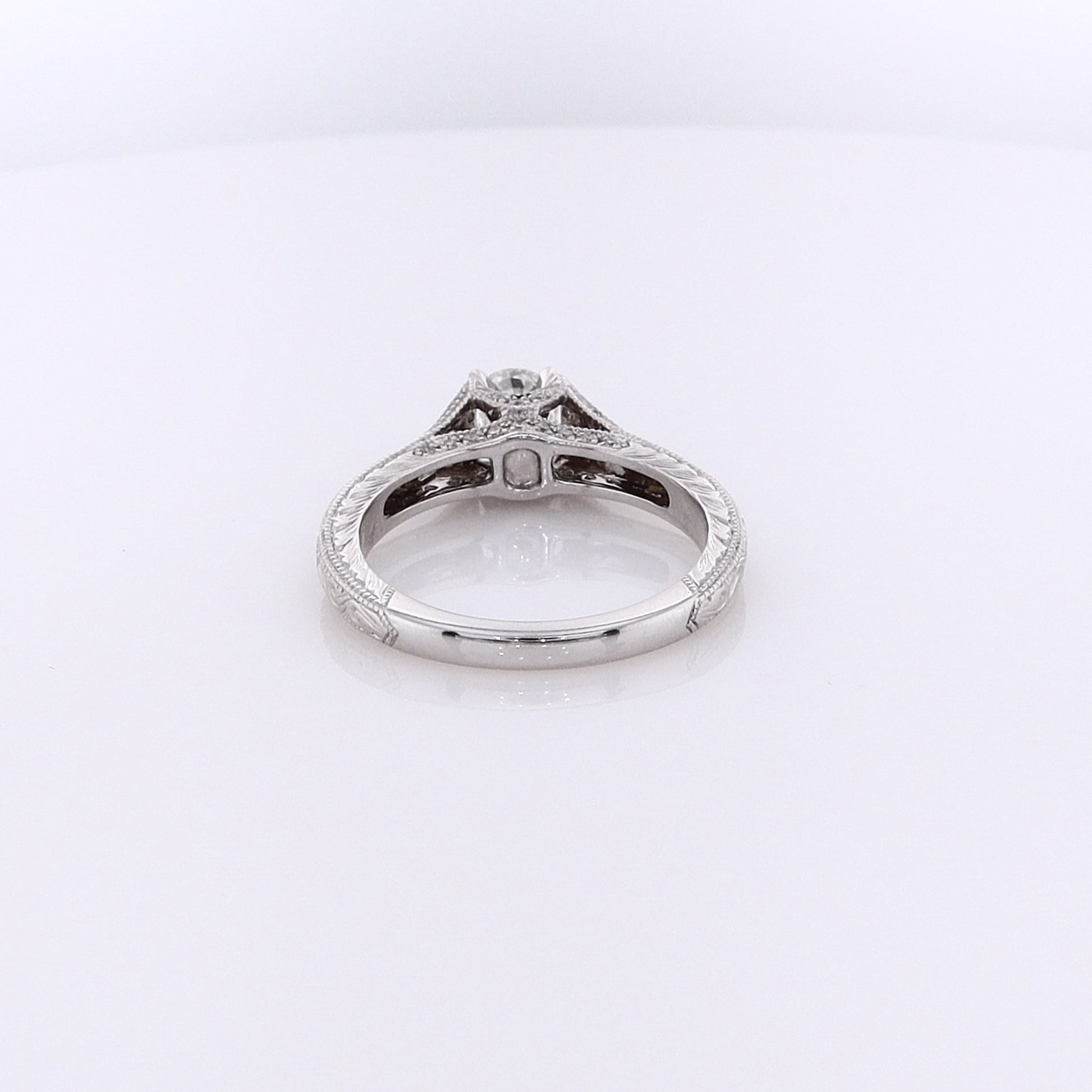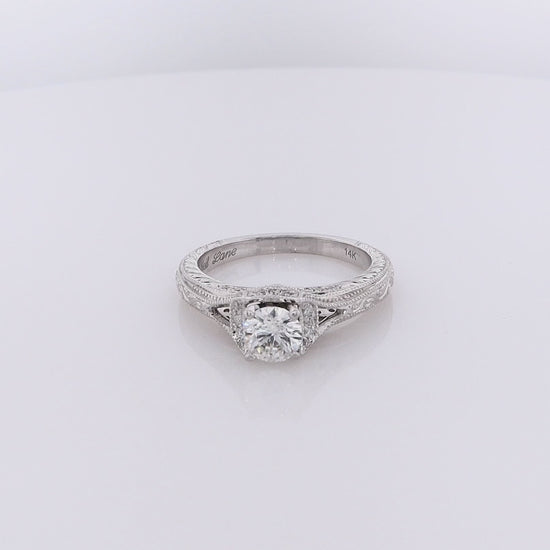 Estate 14 Karat White Gold Engraved Shank Diamond Engagement Ring