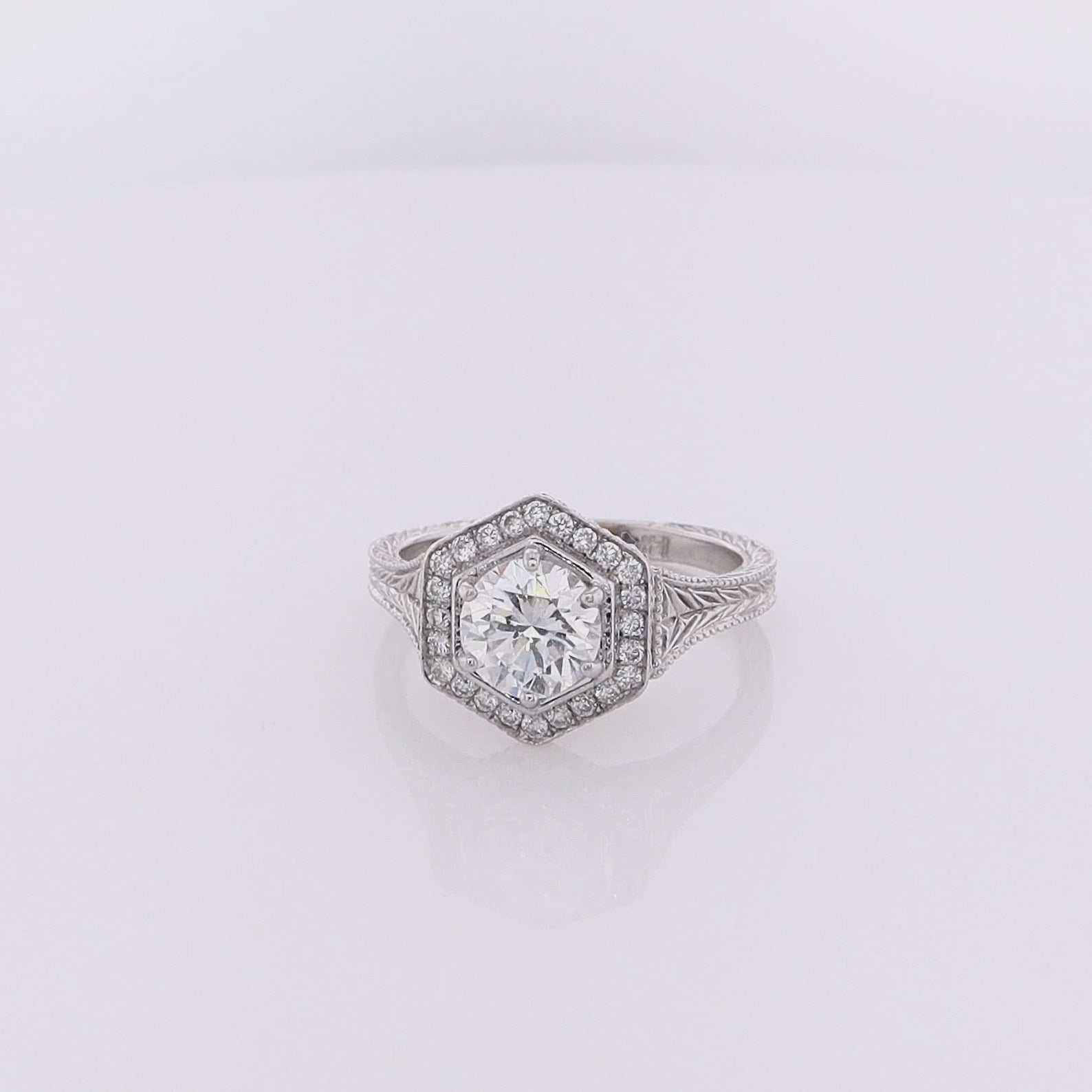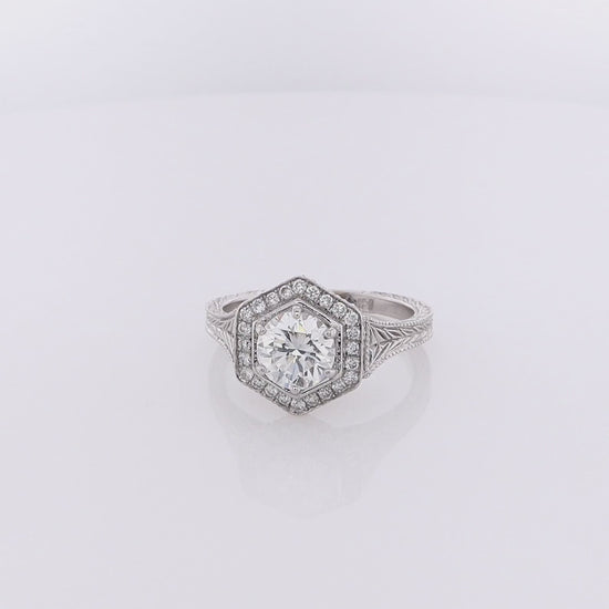 Estate 14 Karat White Gold Engraved Tapered Shank Diamond Engagement Ring with GIA Certification BT-SM1001640-02