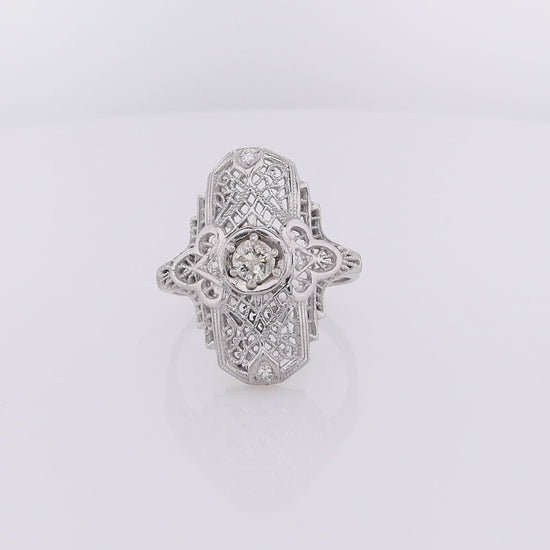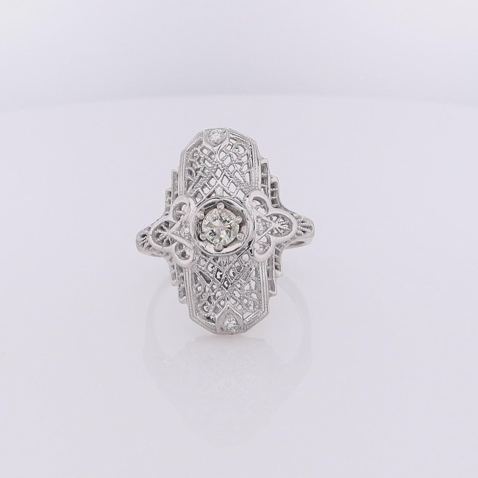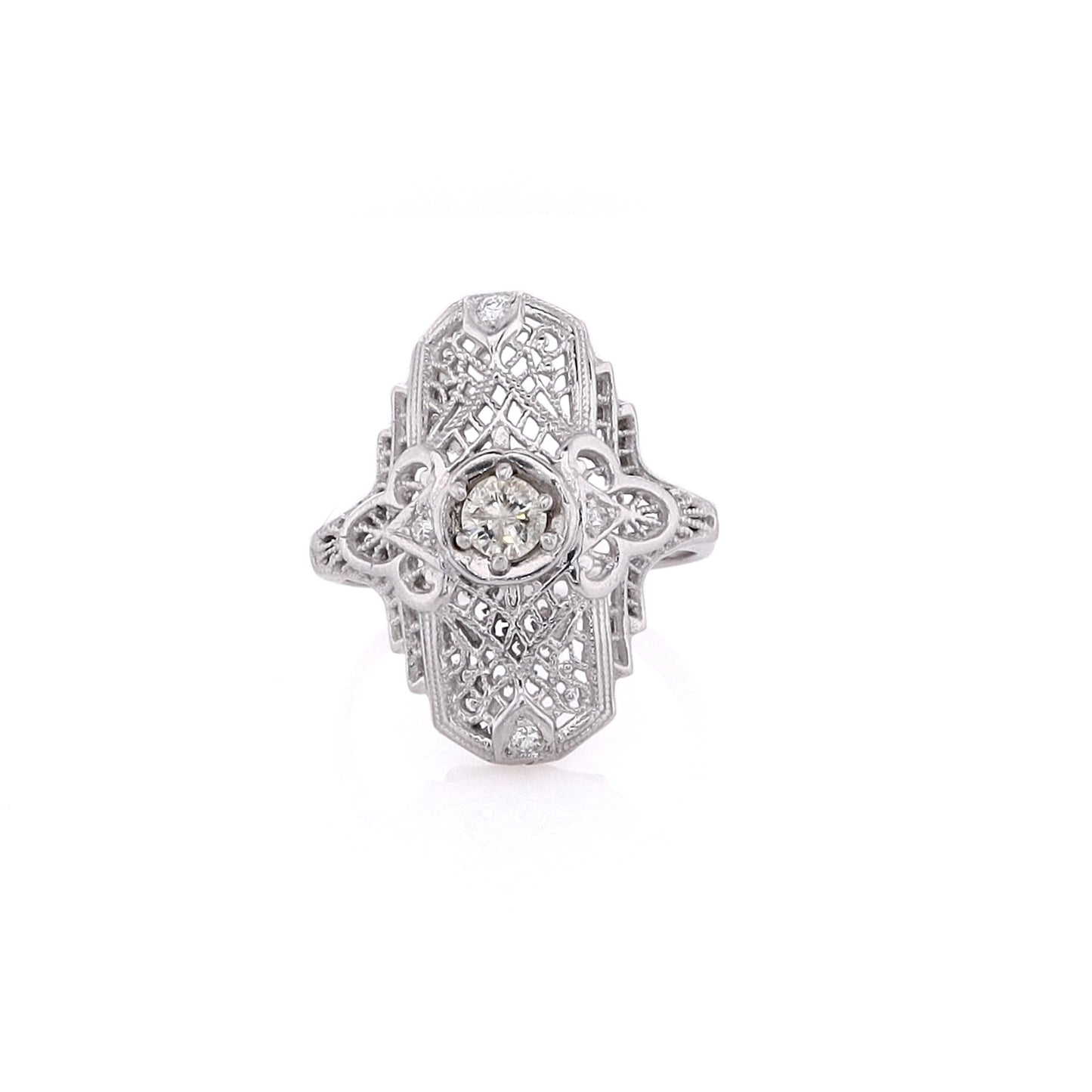 Estate 14 Karat White Gold Filigree Diamond Ring