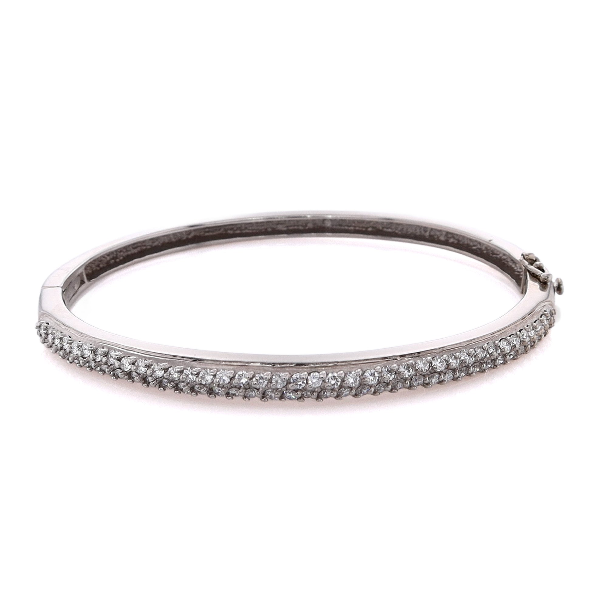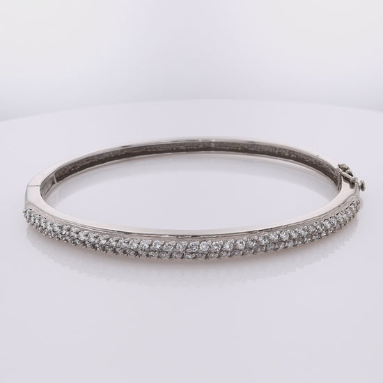 Estate 14 Karat White Gold Hinged Diamond Bangle Bracelet