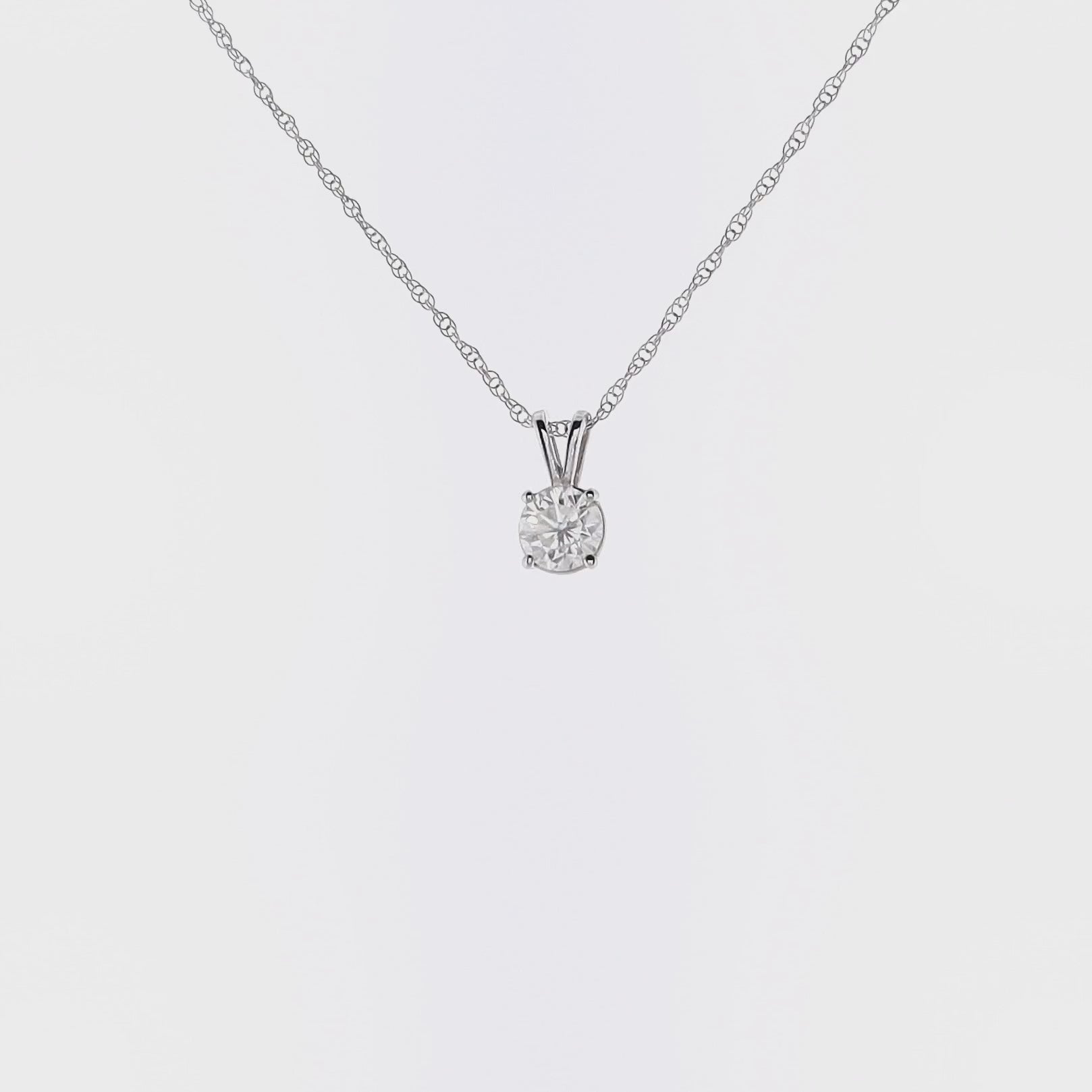Estate 14 Karat White Gold Solitaire Diamond Pendant Necklace