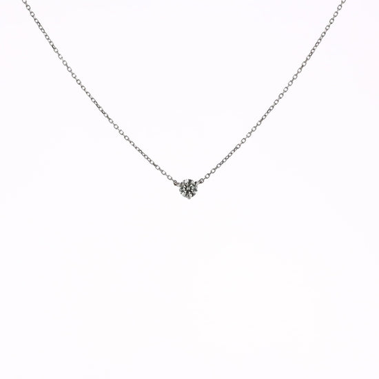 Estate 14 Karat White Gold Solitaire Diamond Stationary Pendant Cable Chain Necklace