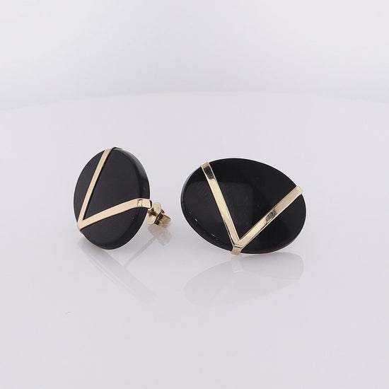 Estate 14 karat Yellow Gold Black Onyx Tablet Earrings