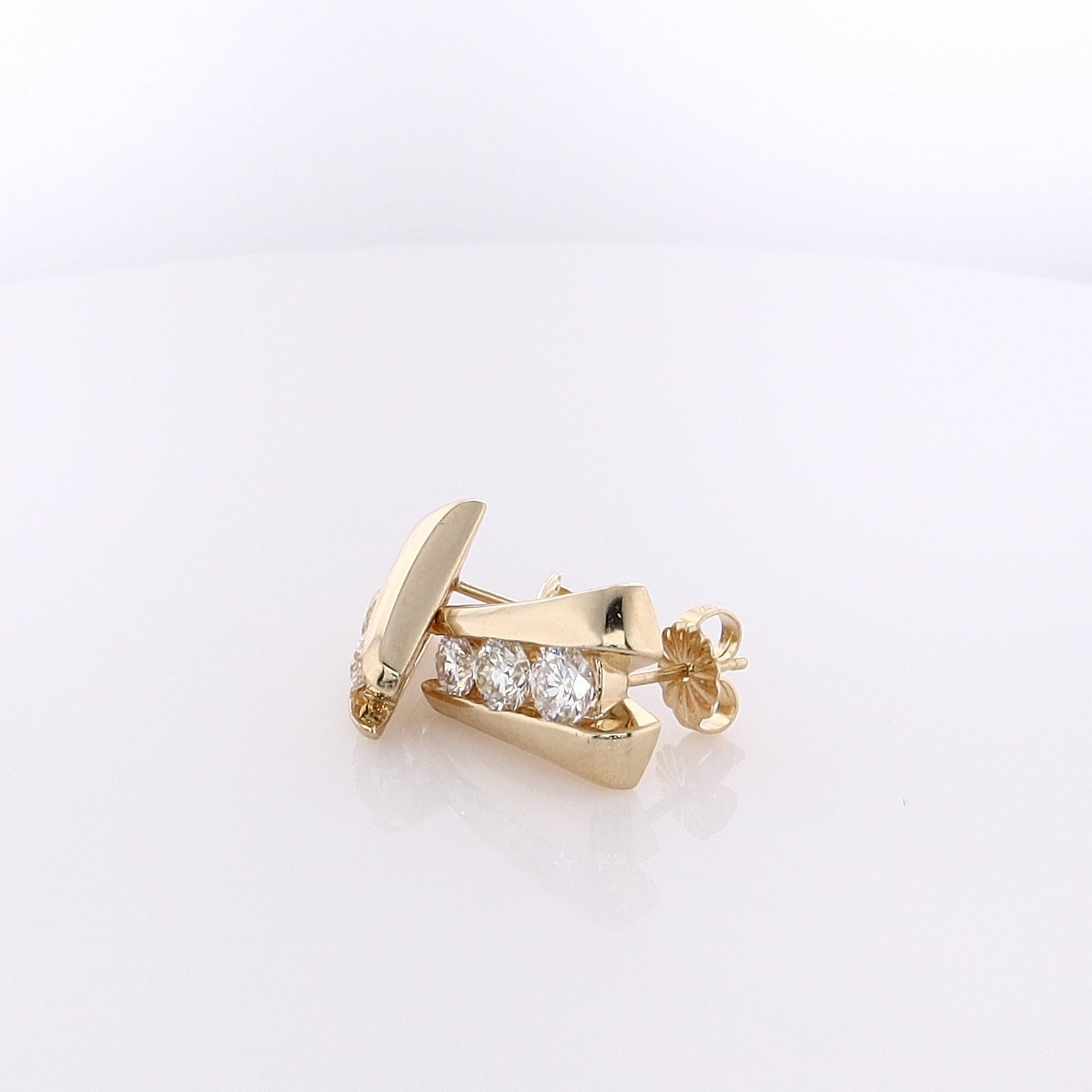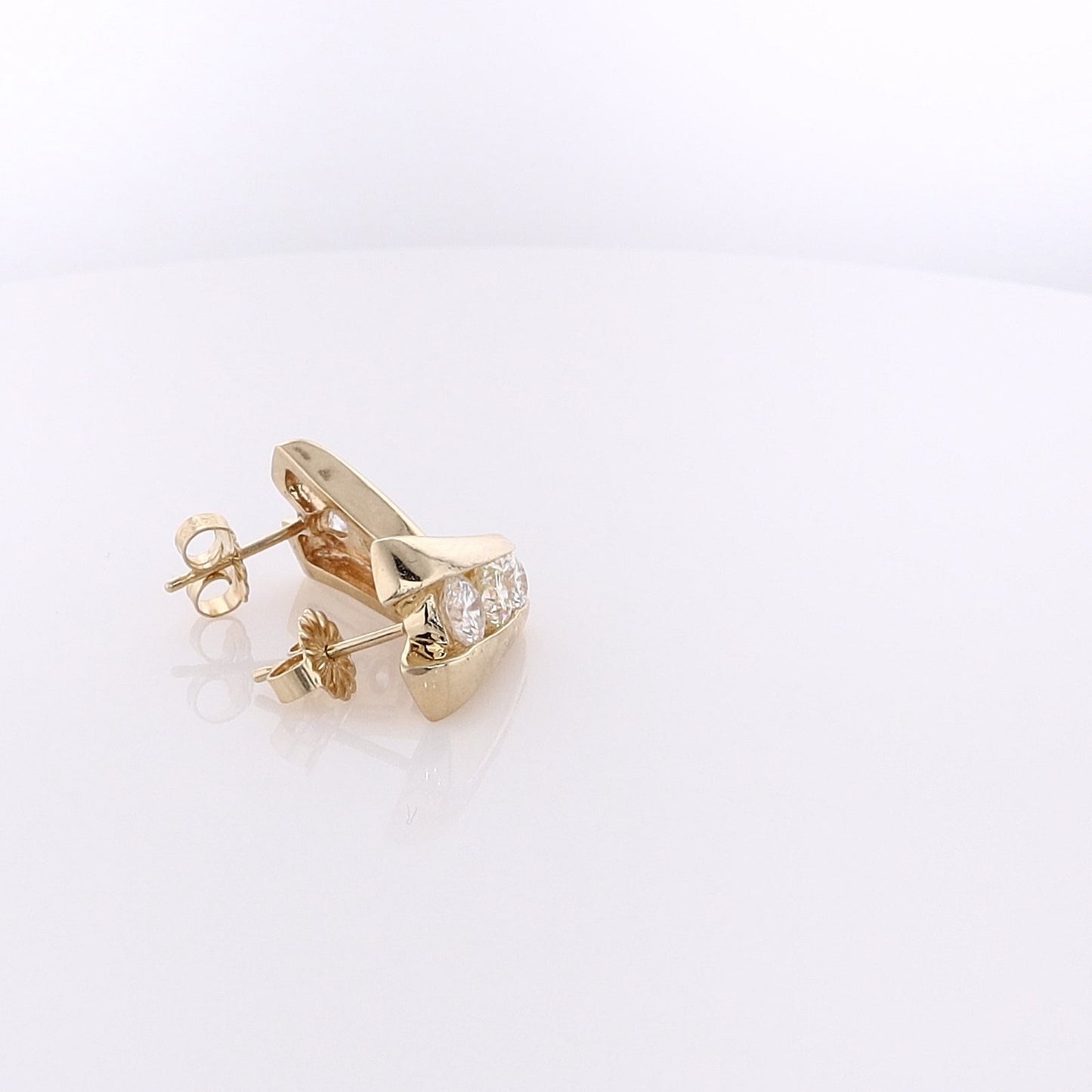 Estate 14 Karat Yellow Gold Inverted "V" Diamond Earrings