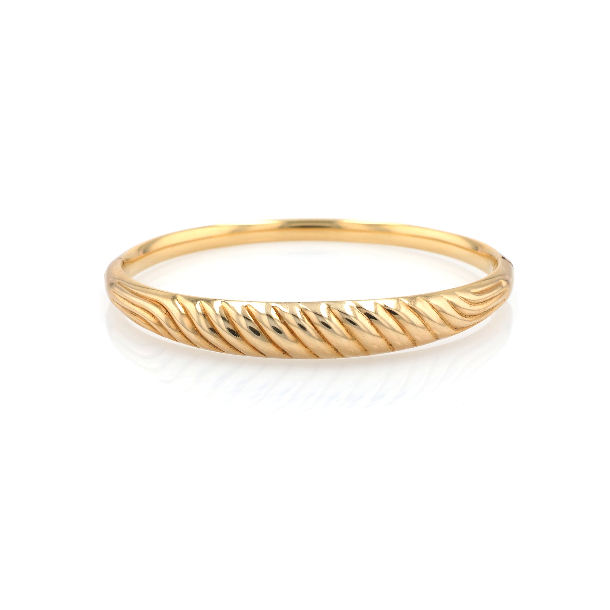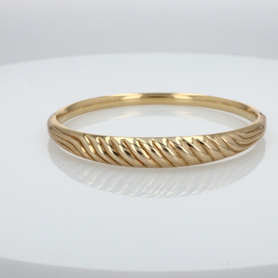 Estate 14 Karat Yellow Gold Tapered Ribbed Top Design Hinged Bangle