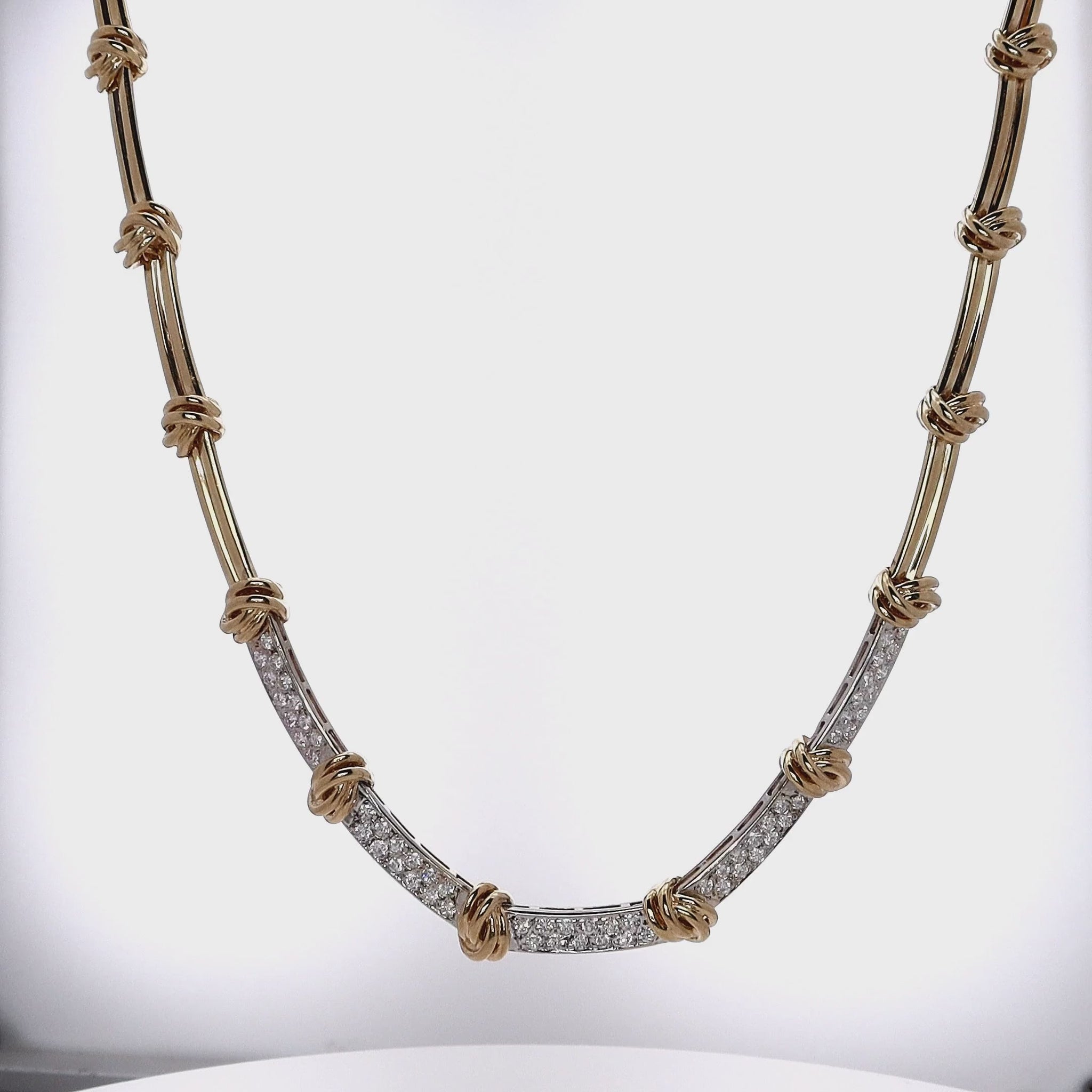 Estate 14k Two-Tone Alternating Knot and Polished Bar Link Diamond Necklace