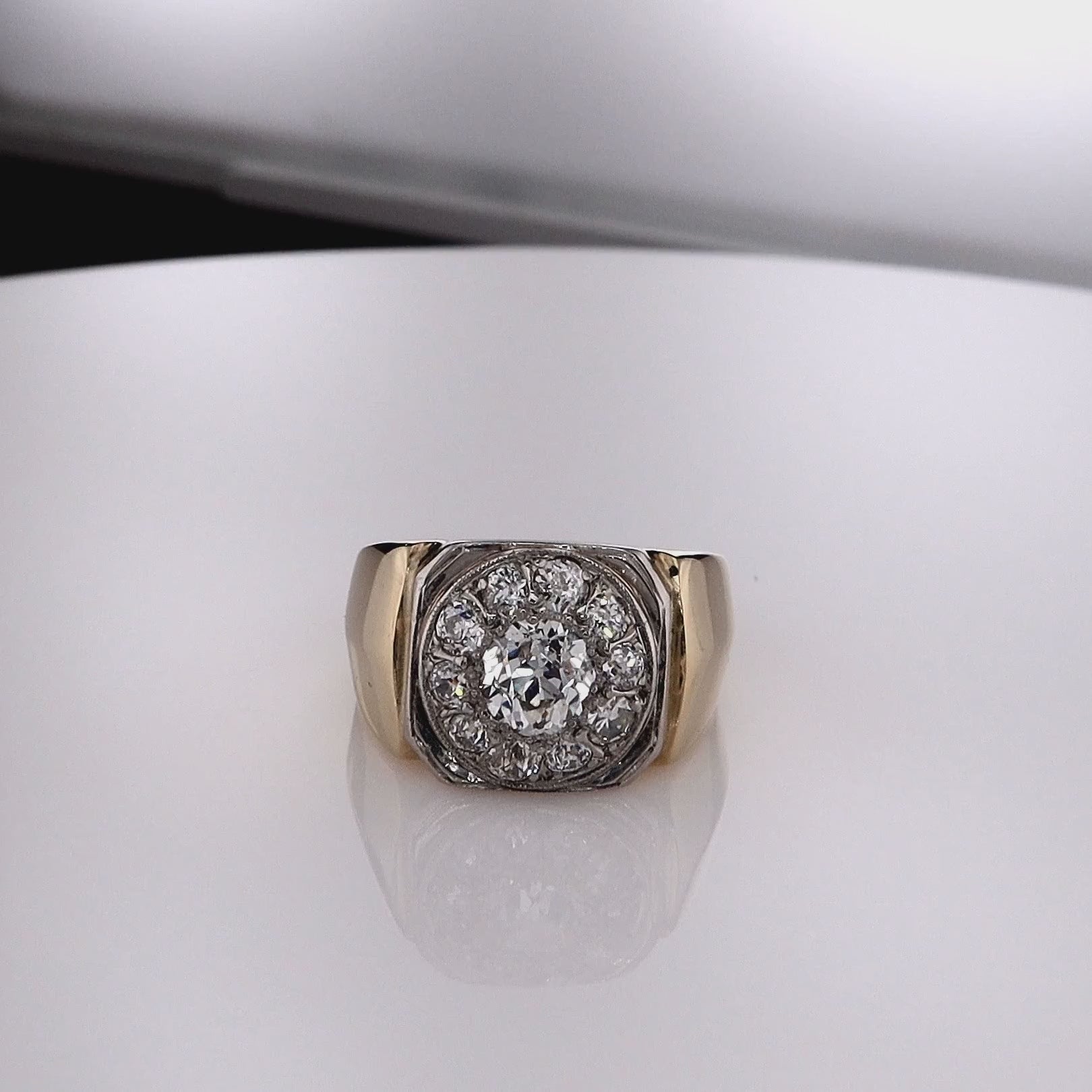 Estate 14k Two-Tone Old European Diamond Cluster Halo Ring