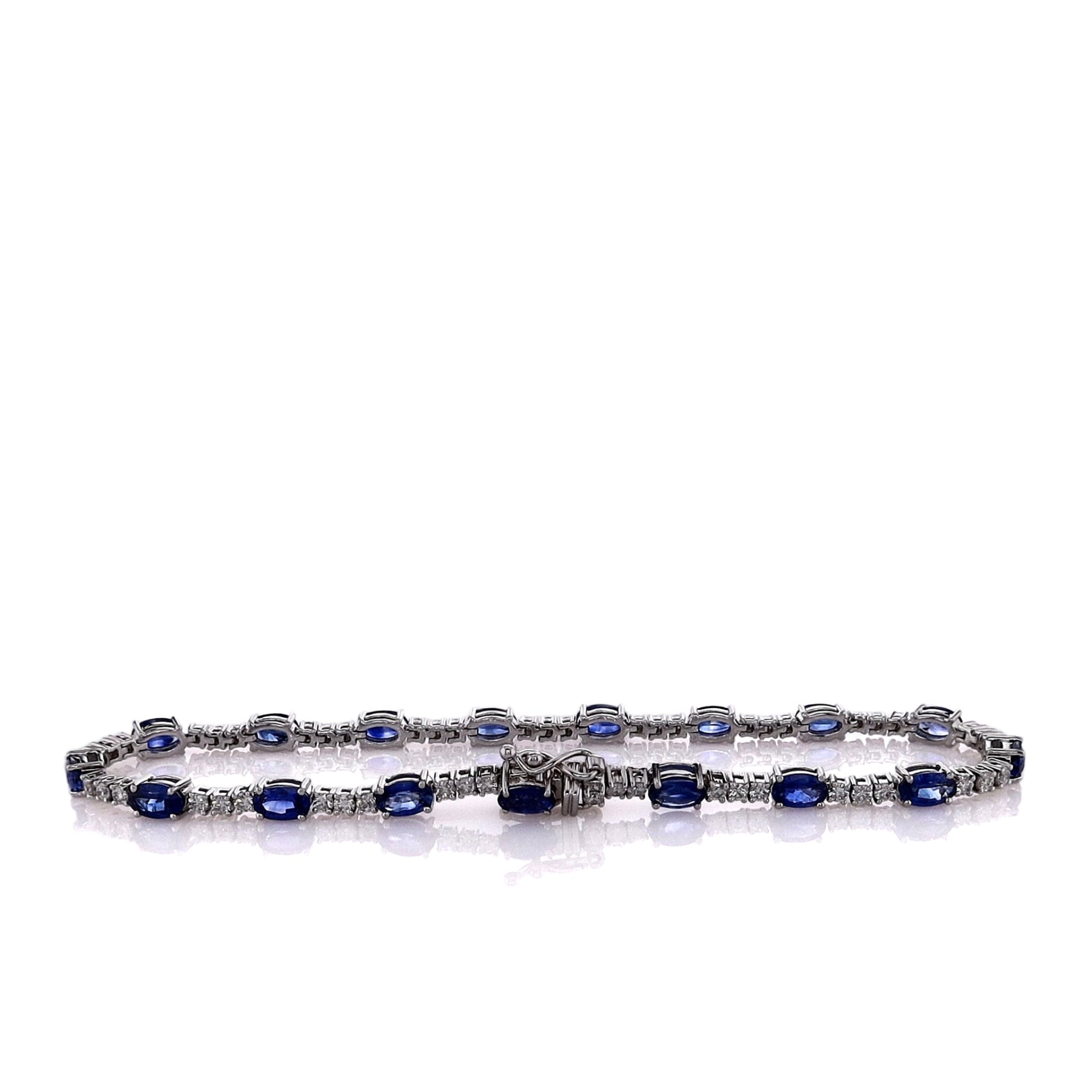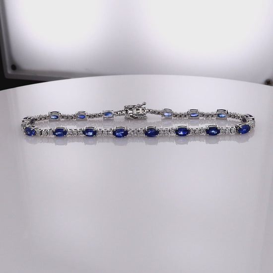 Estate 14k White Gold 7" Alternating Oval Sapphire and Diamond Bracelet