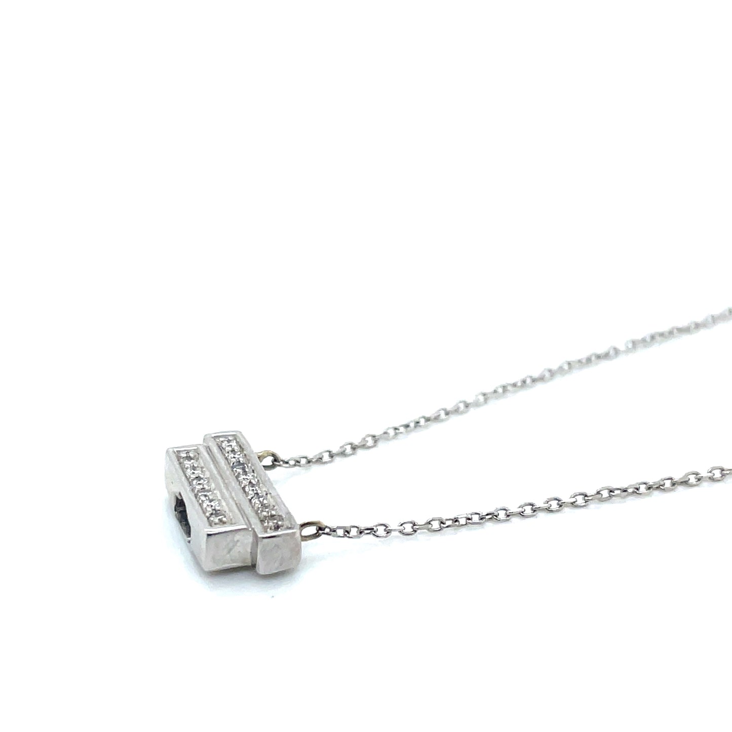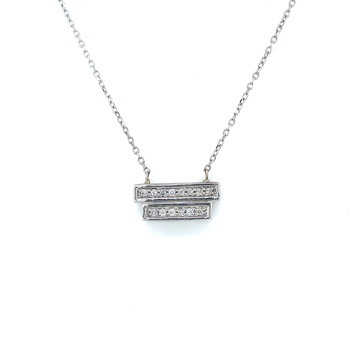 Estate 14k White Gold and Diamond Rectangle Pendant Necklace