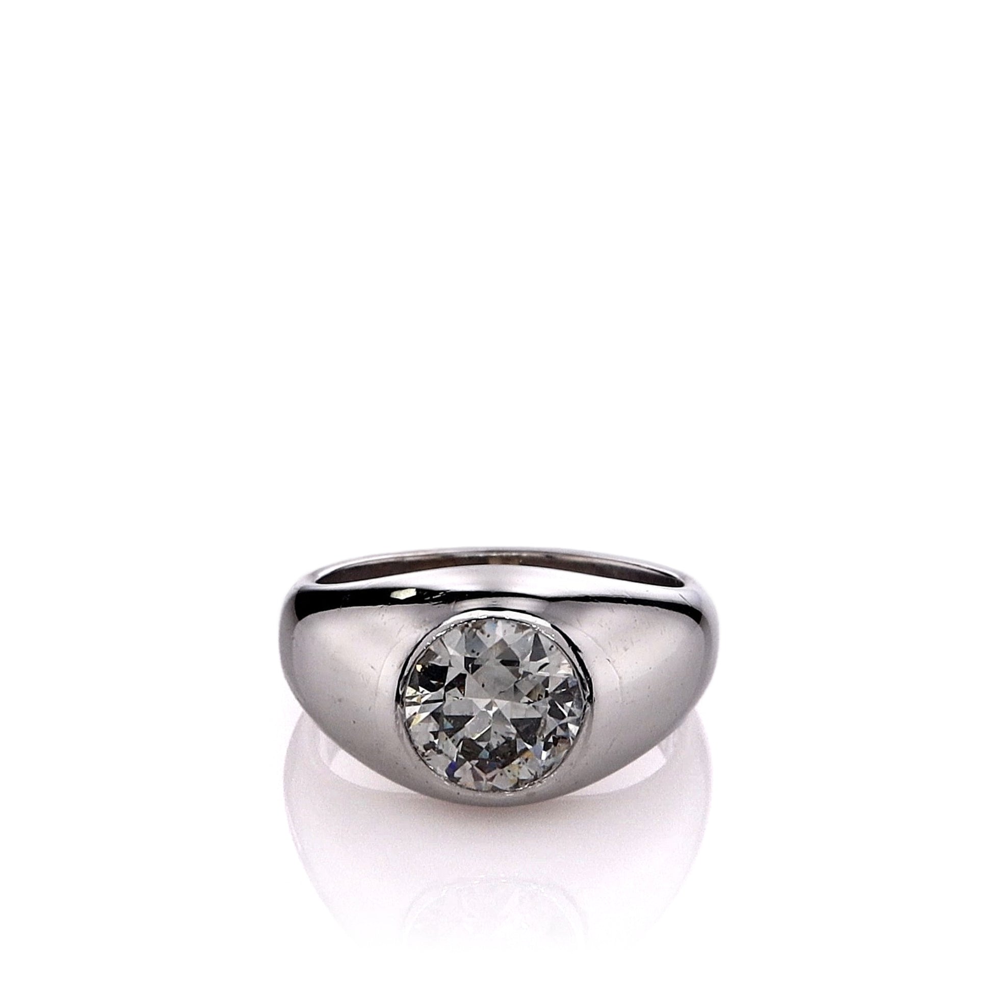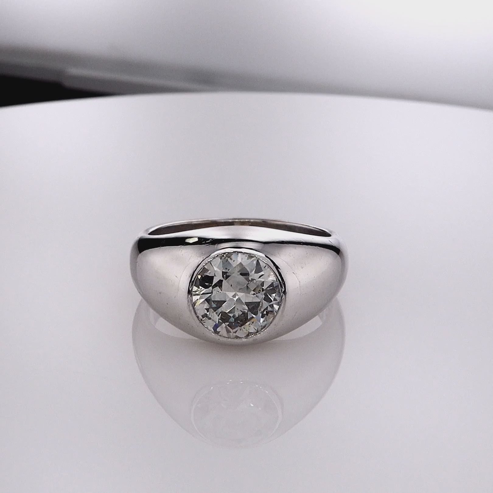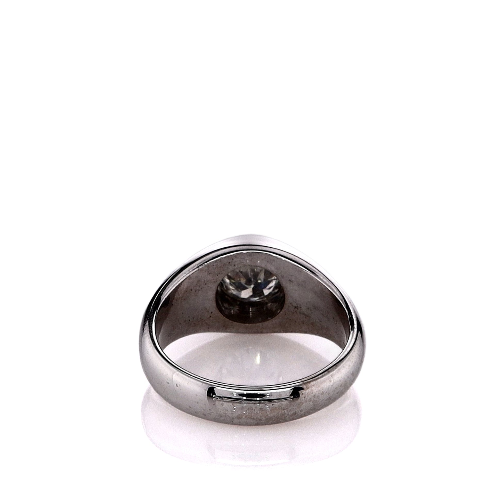 Estate 14k White Gold Gents Domed Bezel-Set Transitional Diamond Ring