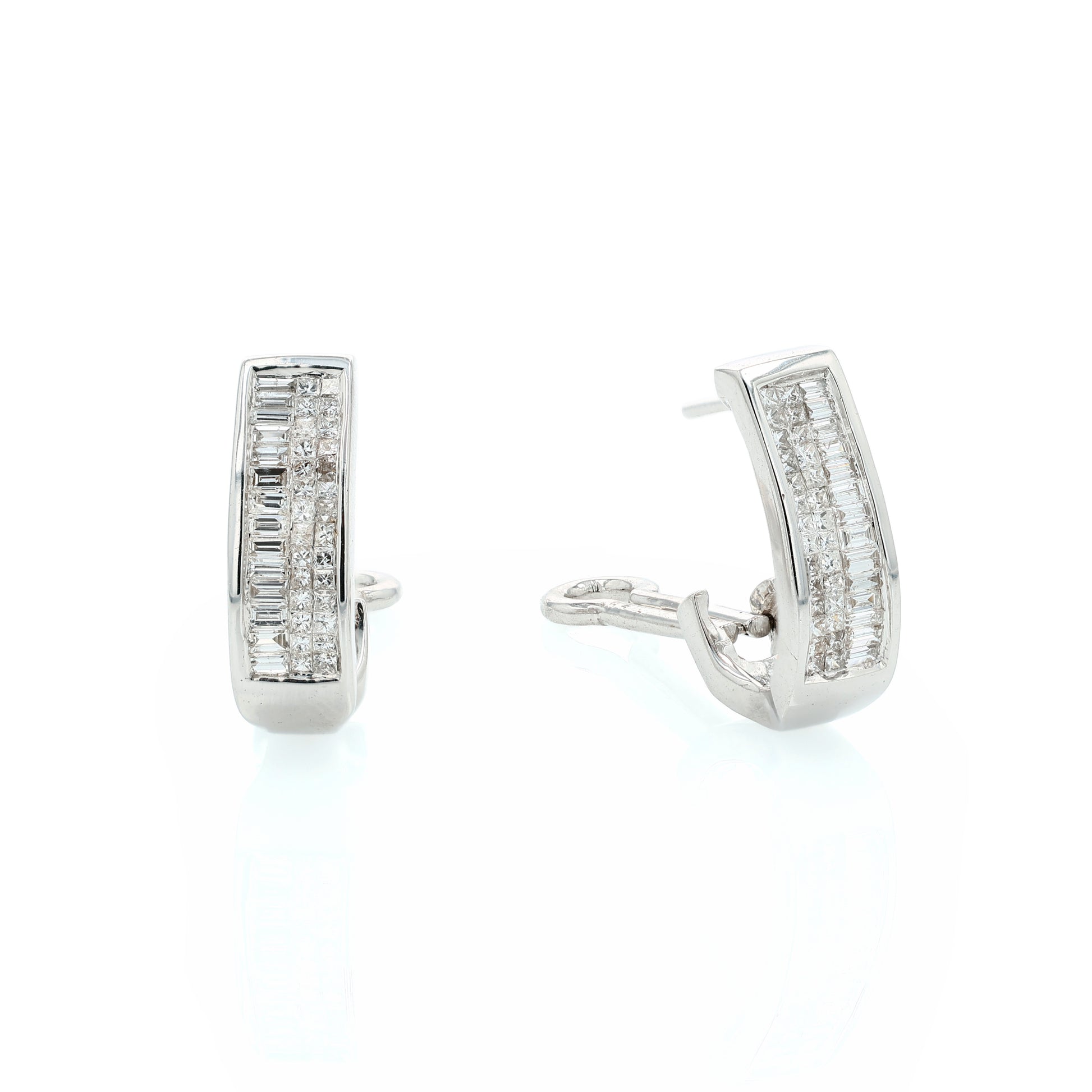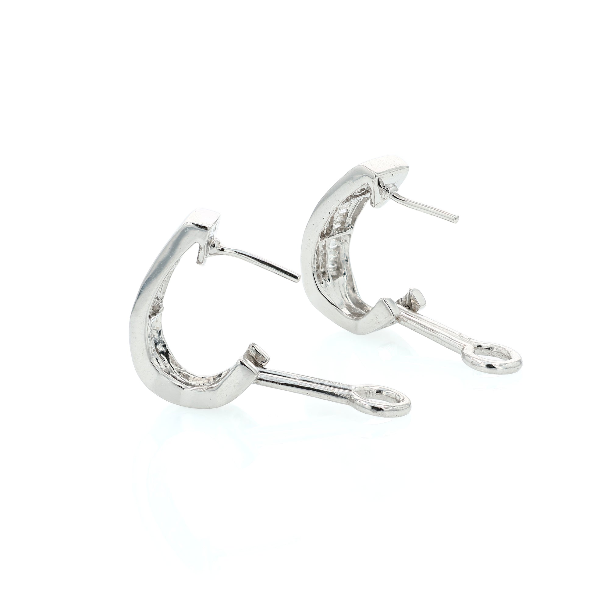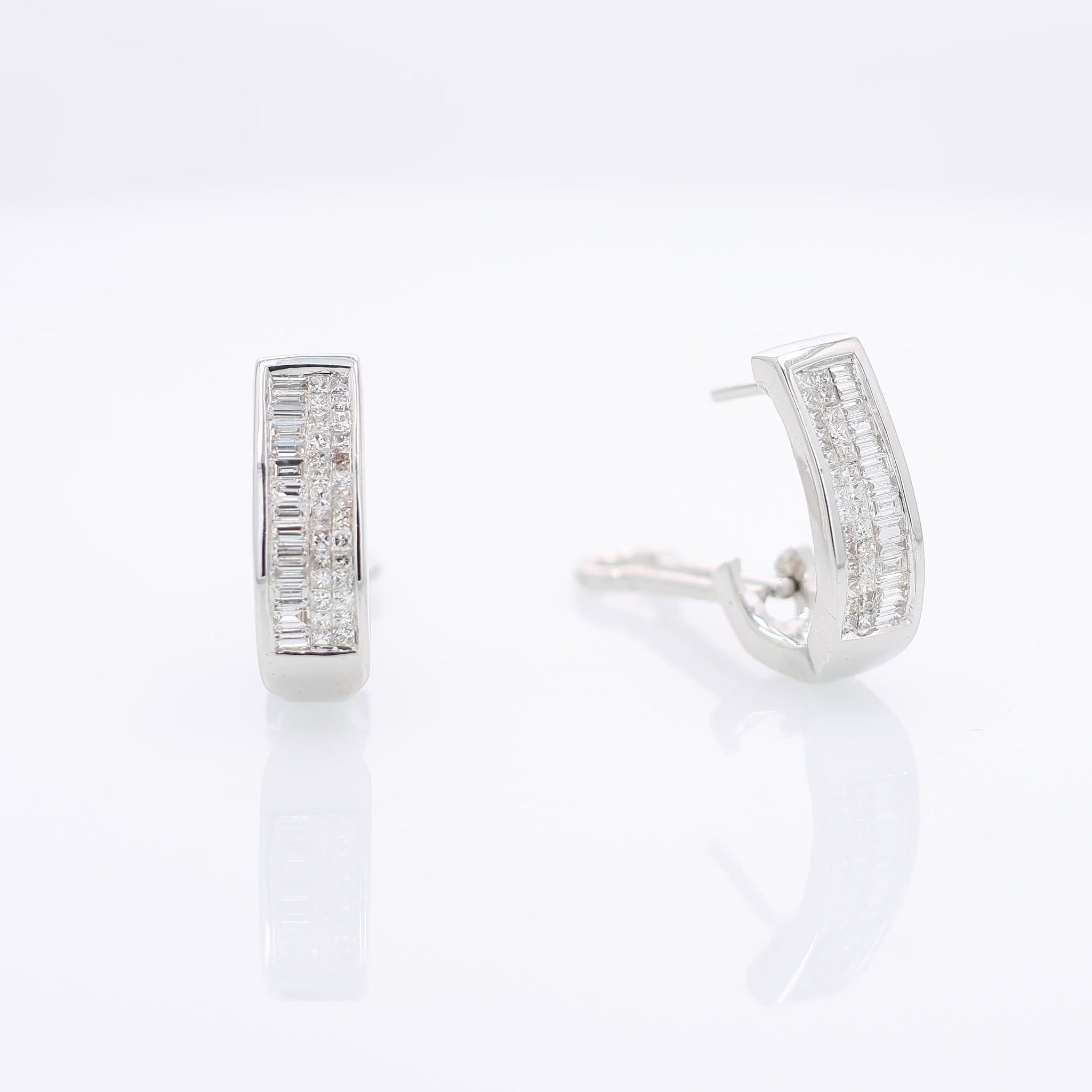 Estate 14k White Gold Invisible Set Diamond J Hoop Earrings