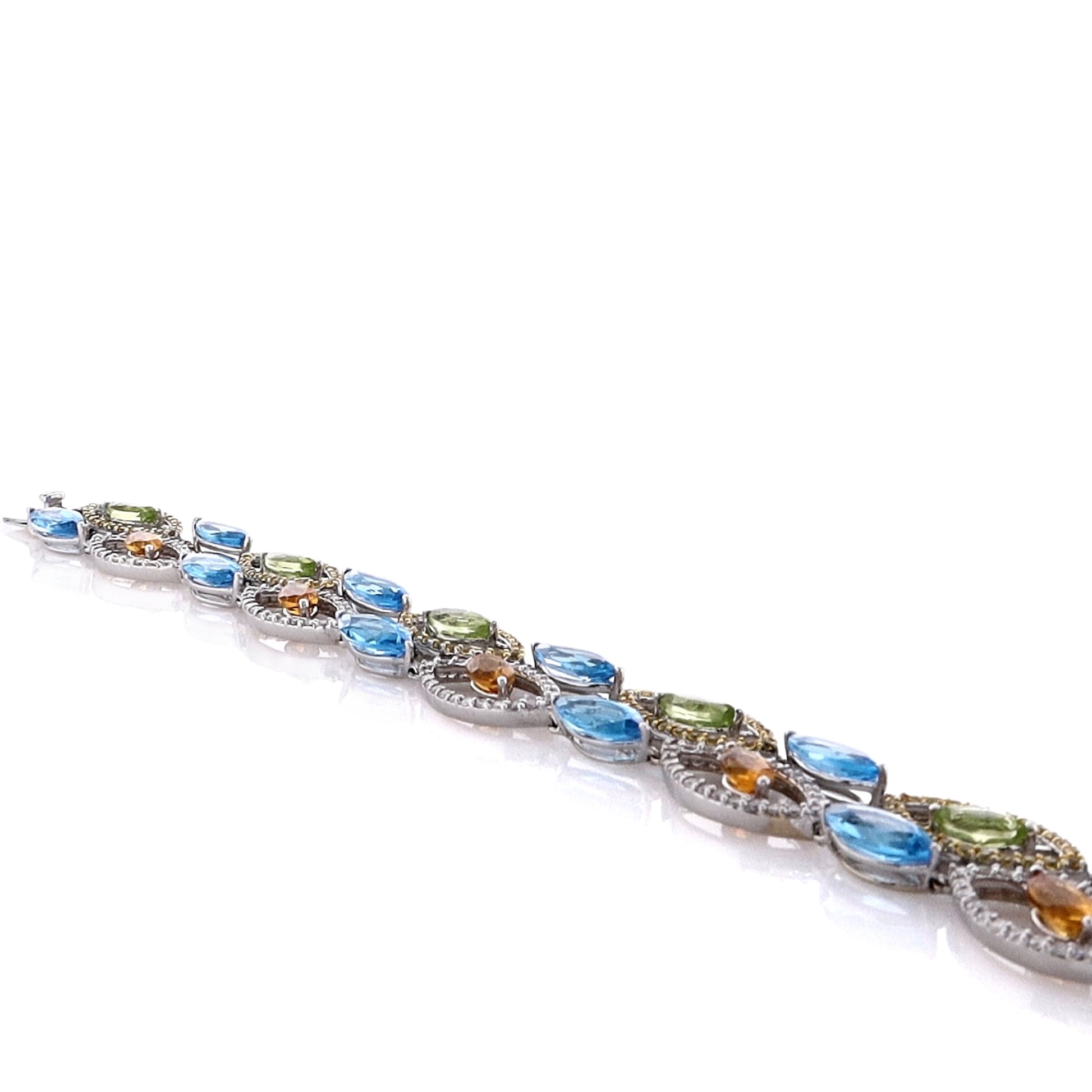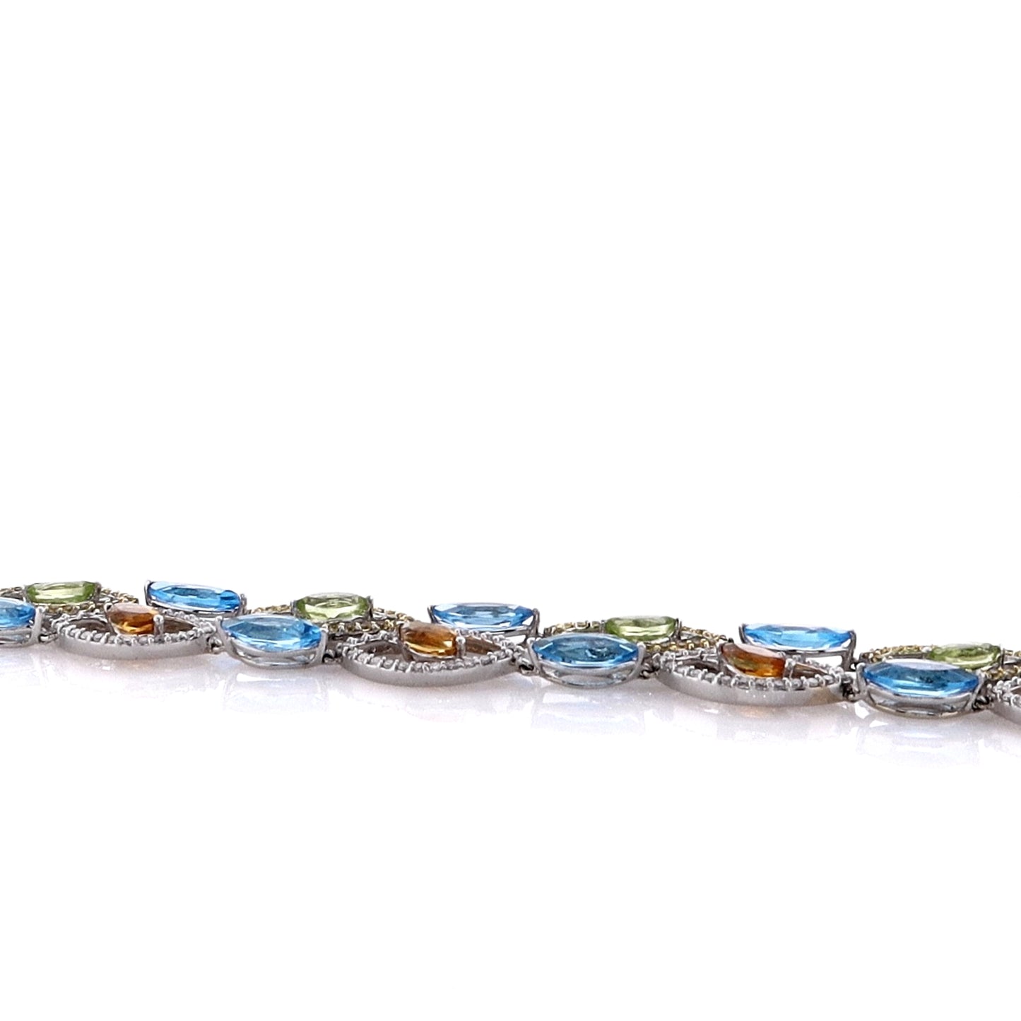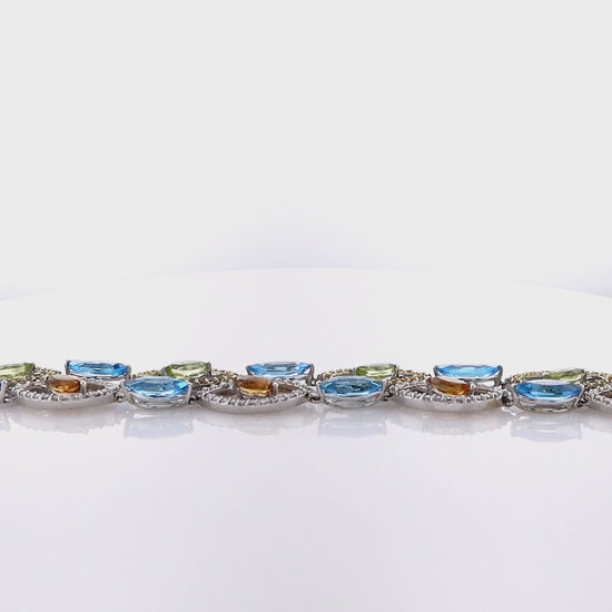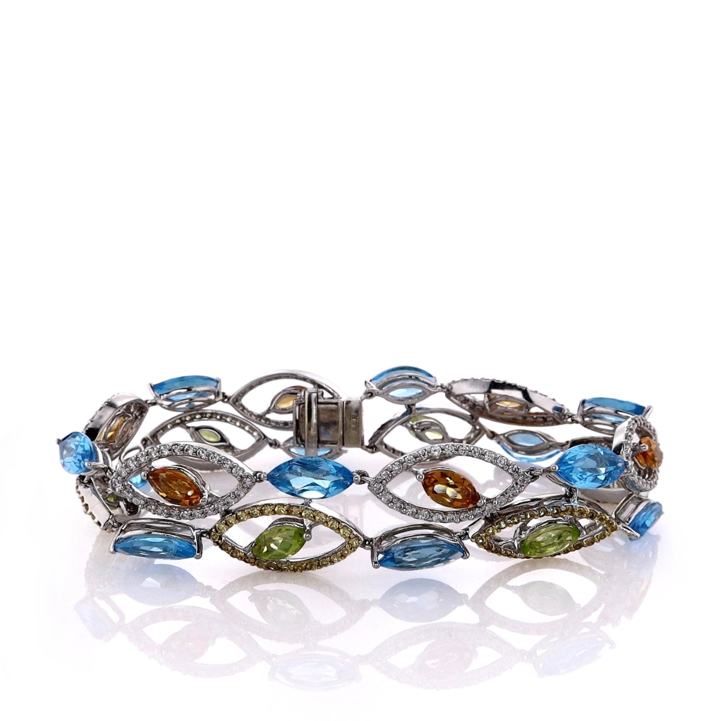 Estate 14k White Gold Multi-Color Marquise Gemstone Diamond and Sapphire Bracelet