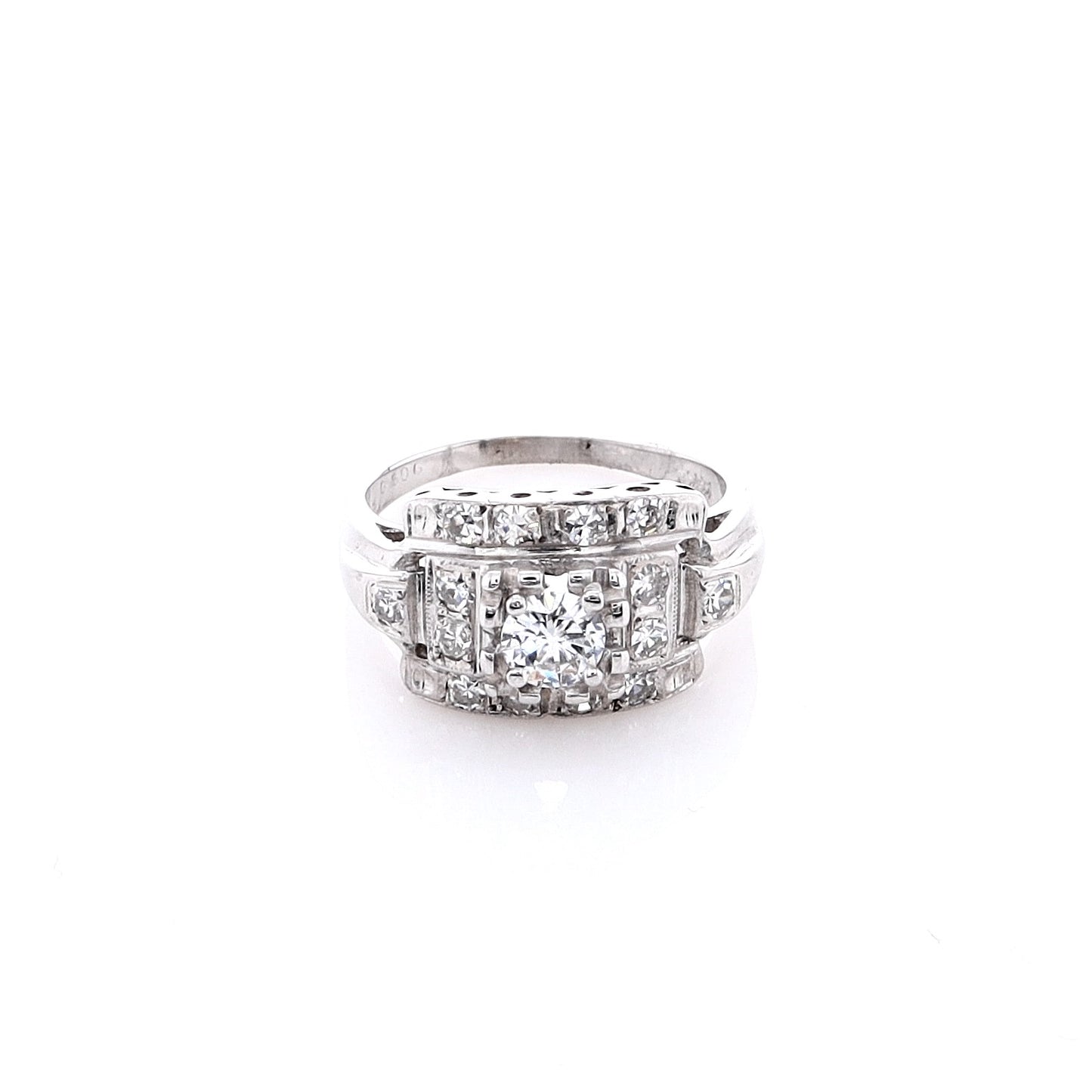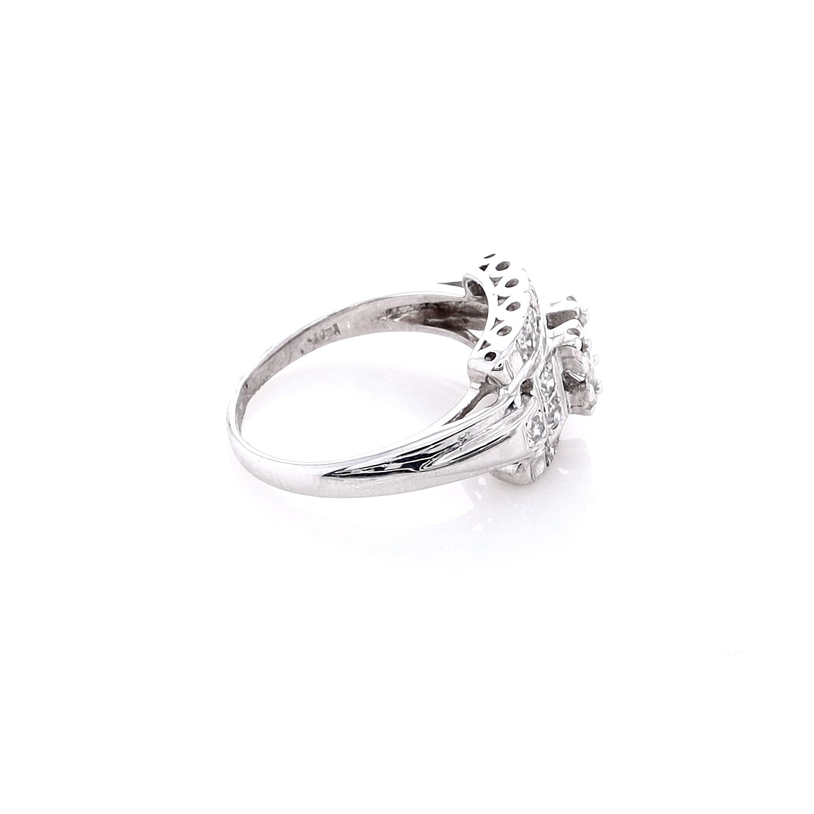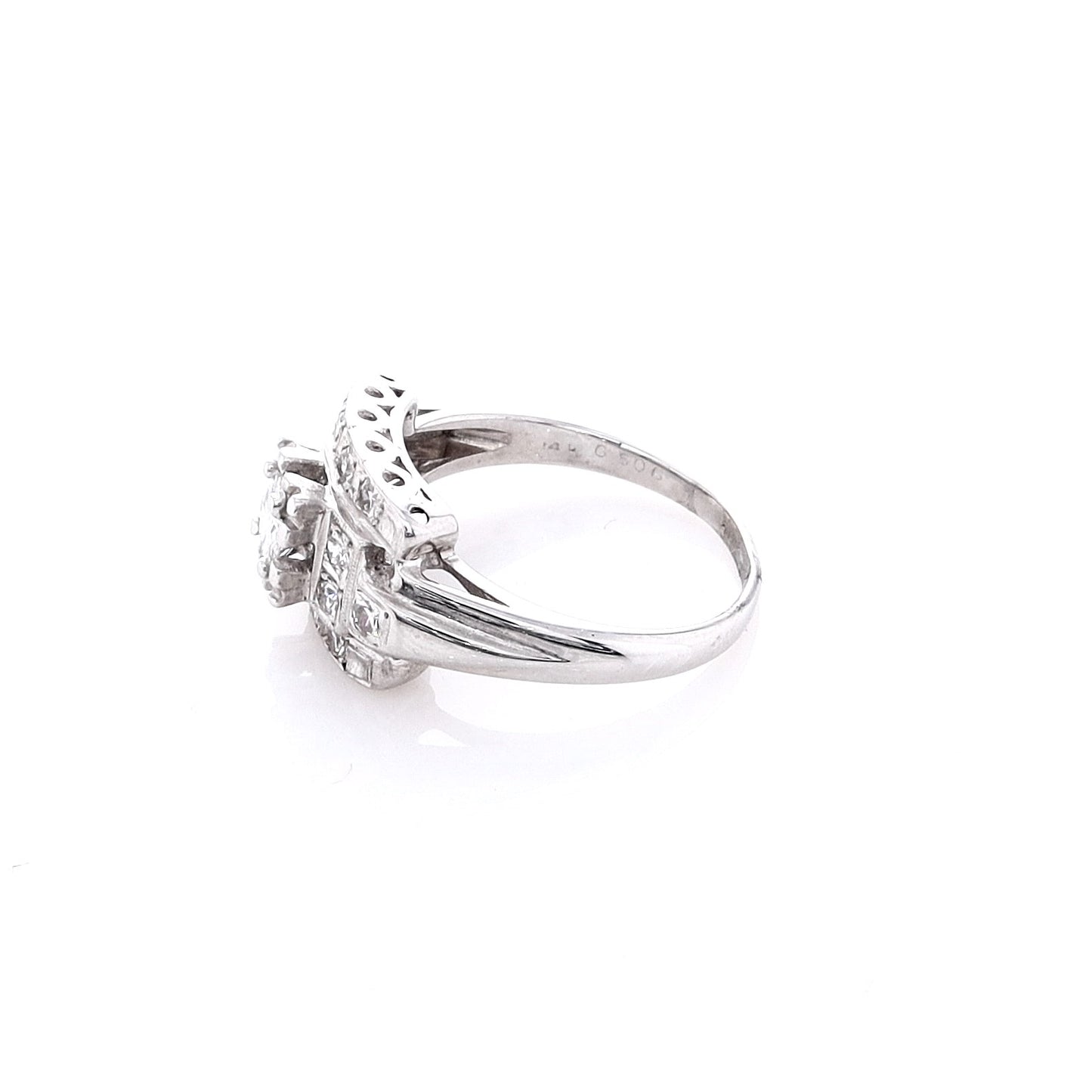 Estate 14k White Gold Rose Cut and Round Brilliant Cut Diamond Ring
