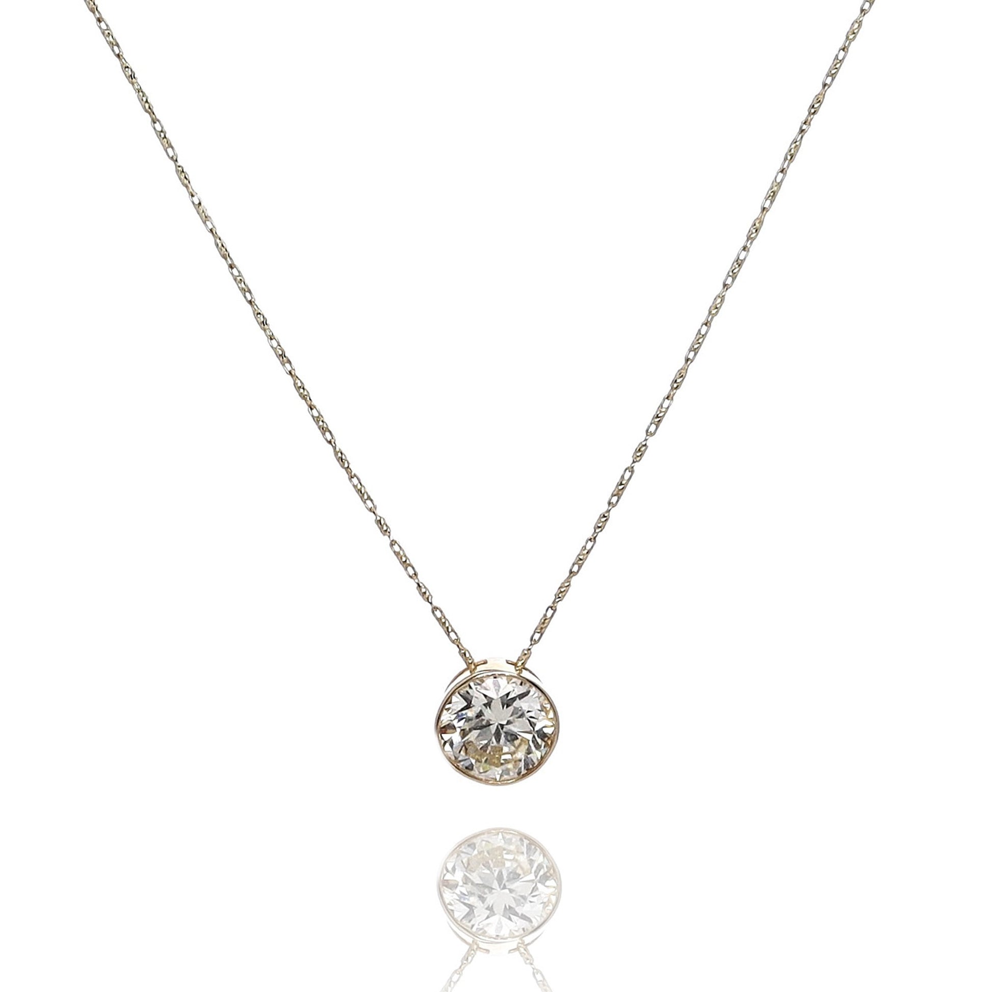 3.26 carat Bezel Set Pendant Solitaire Diamond, O-P Color, SI1 Quality