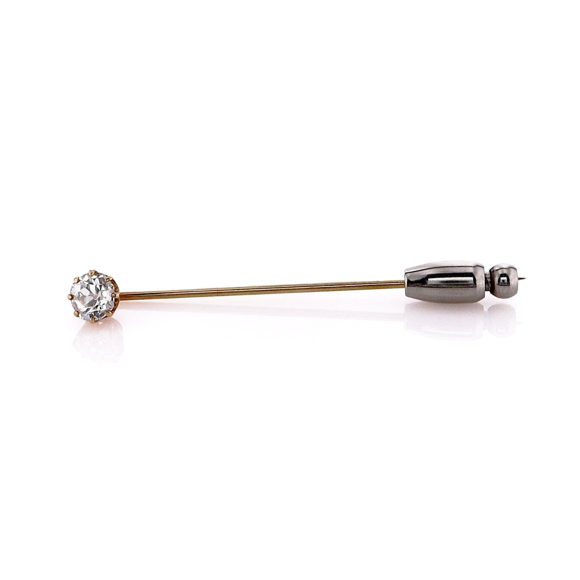 Estate 14k Yellow Gold Old Mine Cut Diamond Stick Pin Stick