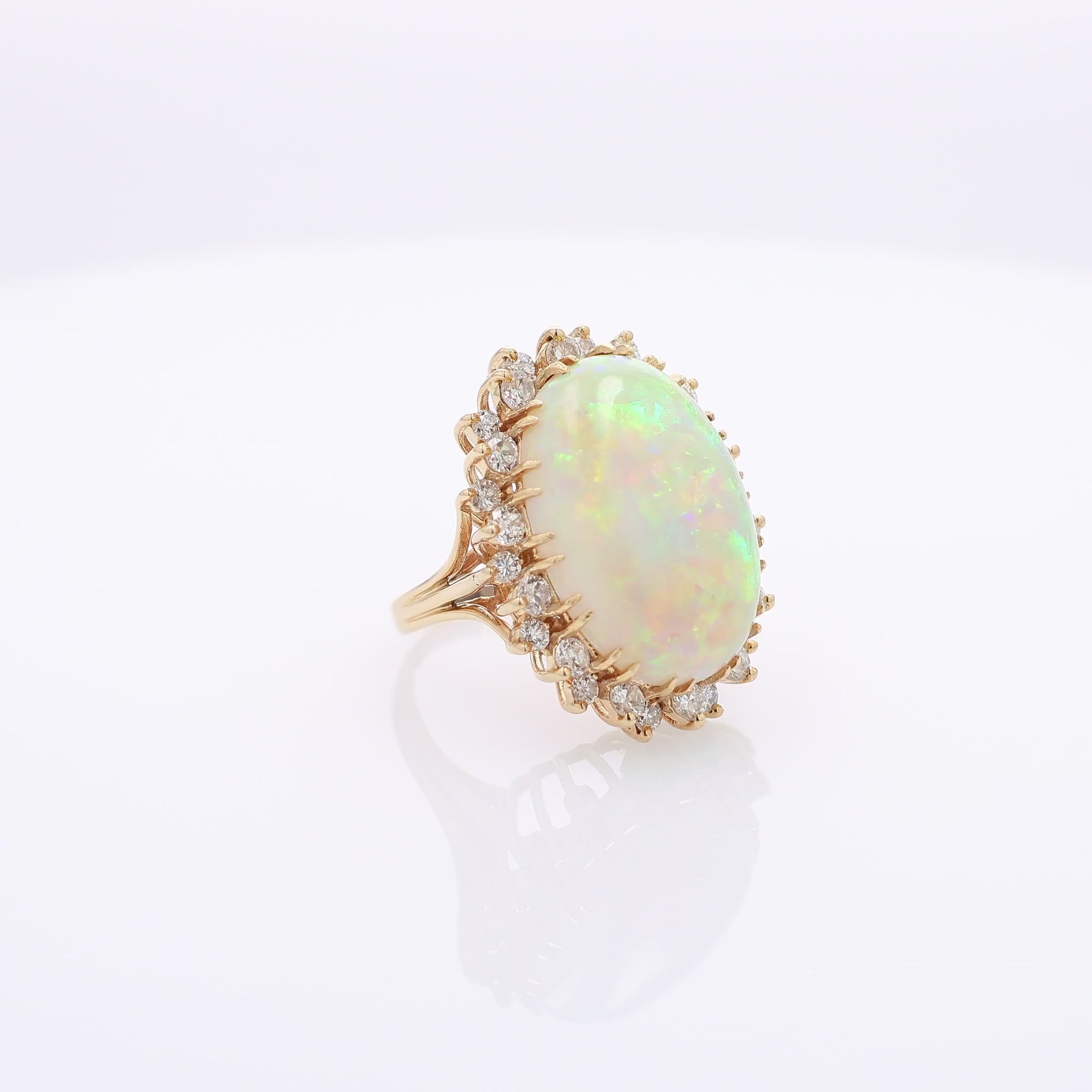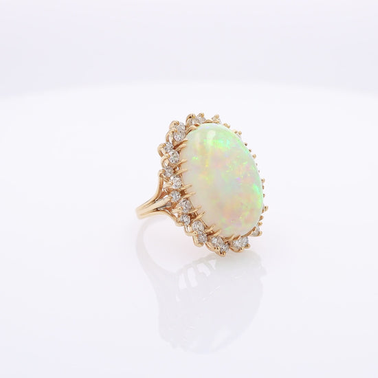 Estate 14k Yellow Gold Oval Opal and Diamond Halo Ring