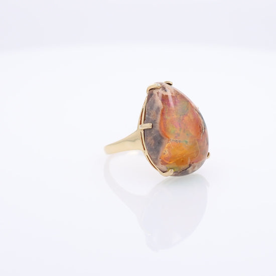 Estate 14k Yellow Gold Pear Shape Jelly Opal Solitaire Ring