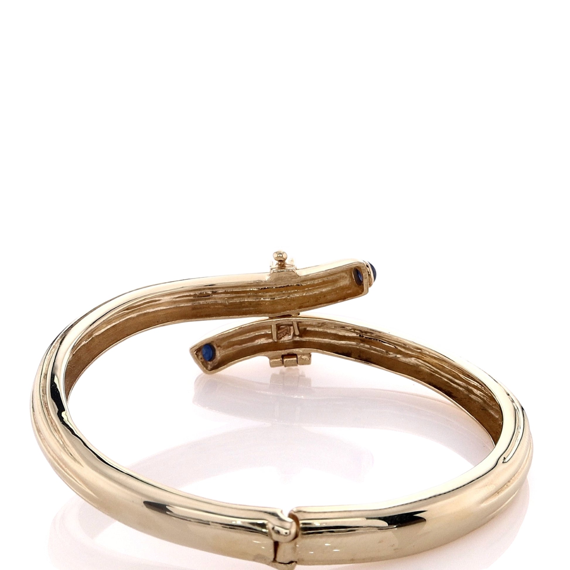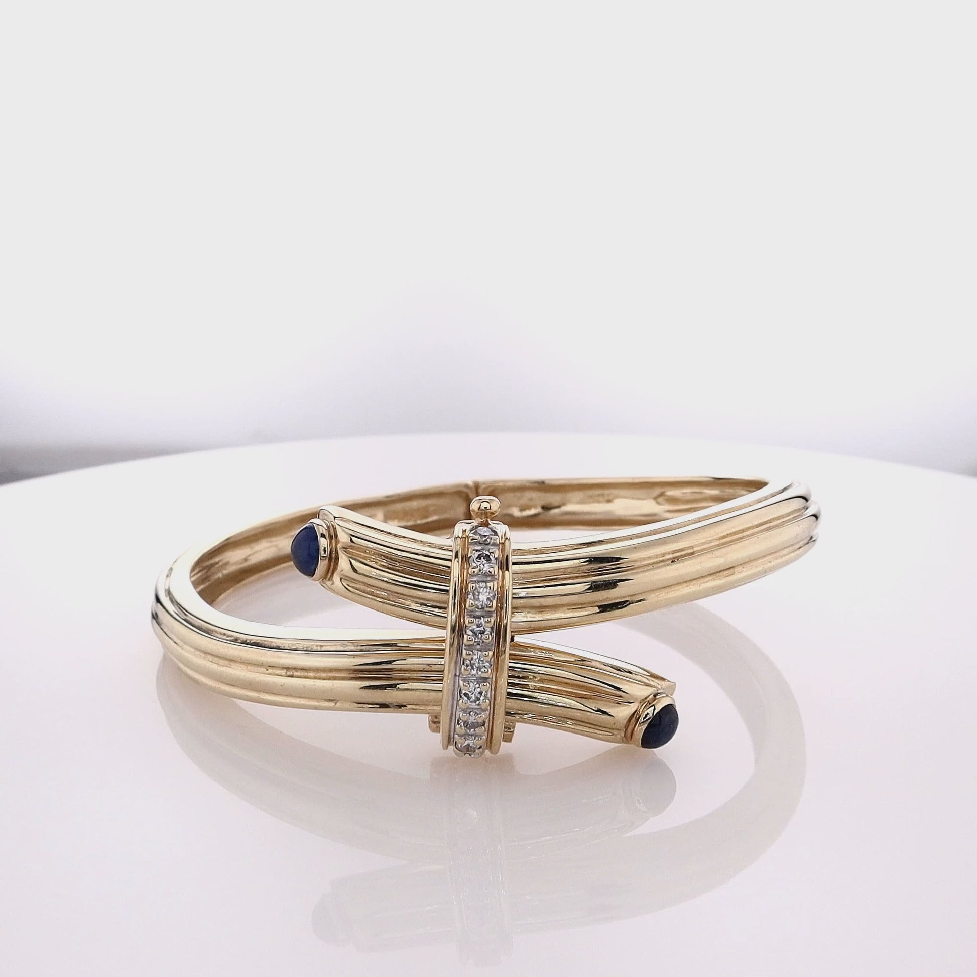 Estate 14k Yellow Gold Ribbed Diamond and Sapphire Bypass Bangle