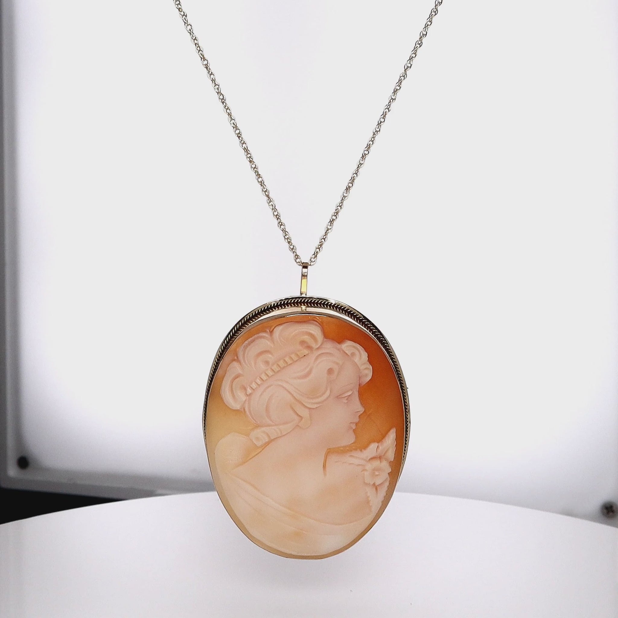 Estate 14k Yellow Gold Right-Facing Woman Carved Shell Cameo Pin & Pendant *No Chain*