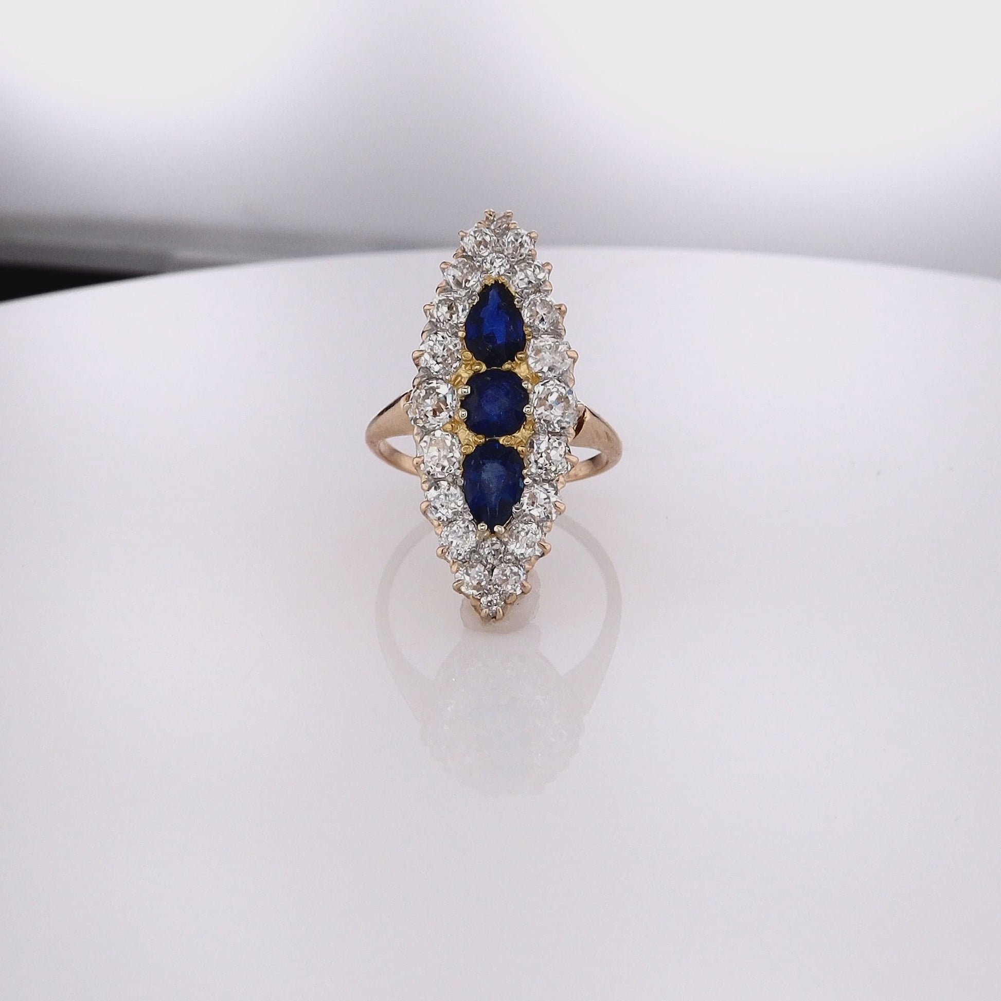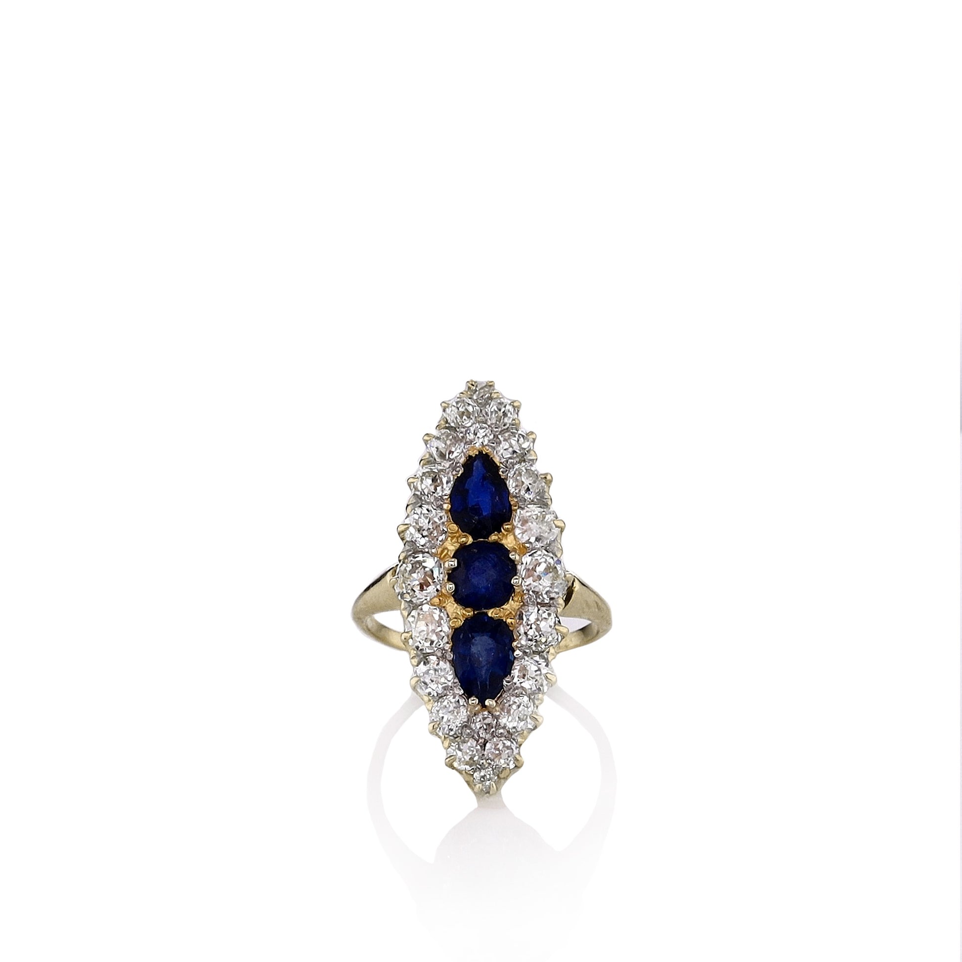 Estate 14k Yellow Gold Sapphire and Diamond Navette Ring