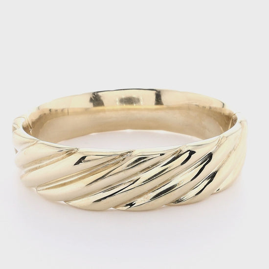 Estate 14k Yellow Gold Twist Design Hinged Bangle