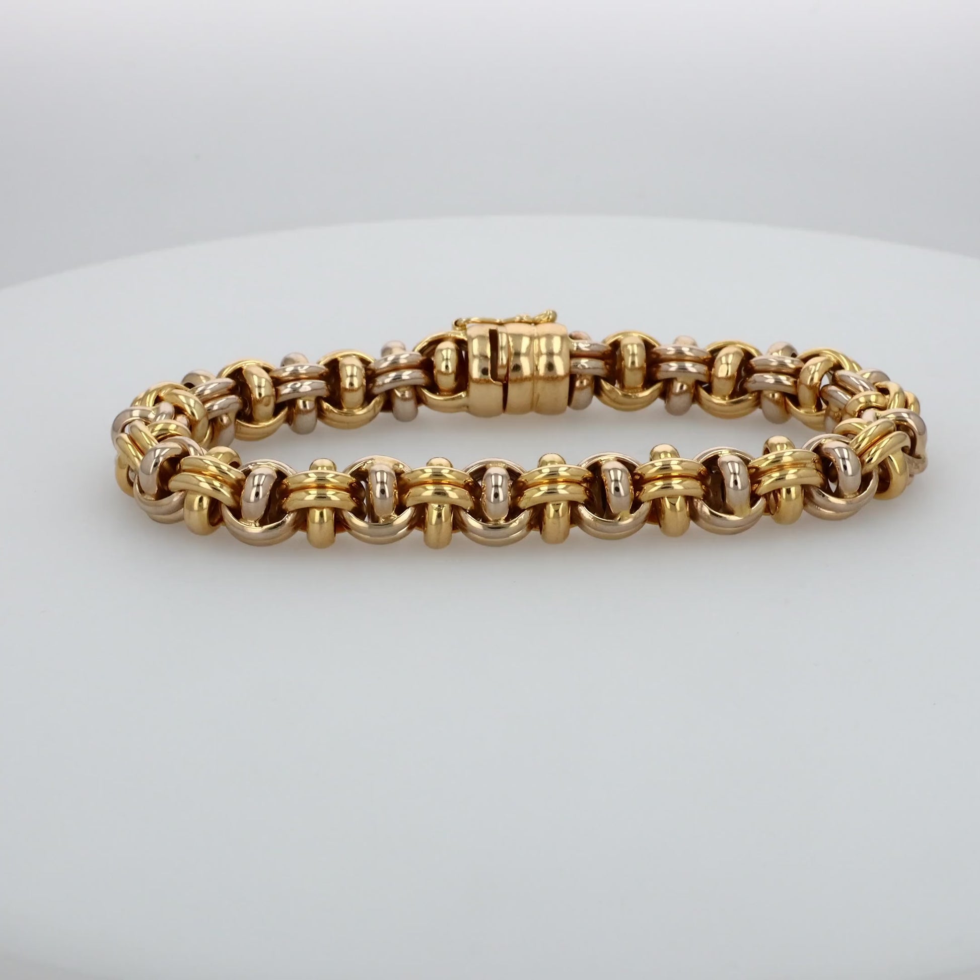 Estate 18 Karat Two-Tone Gold Rounded Interlocking Criss Cross Circle Link Bracelet