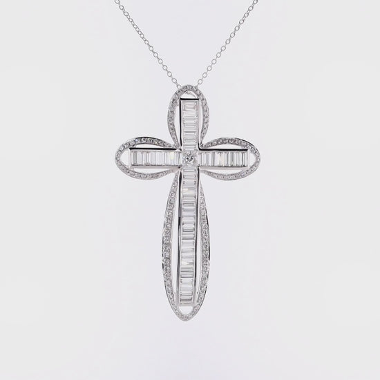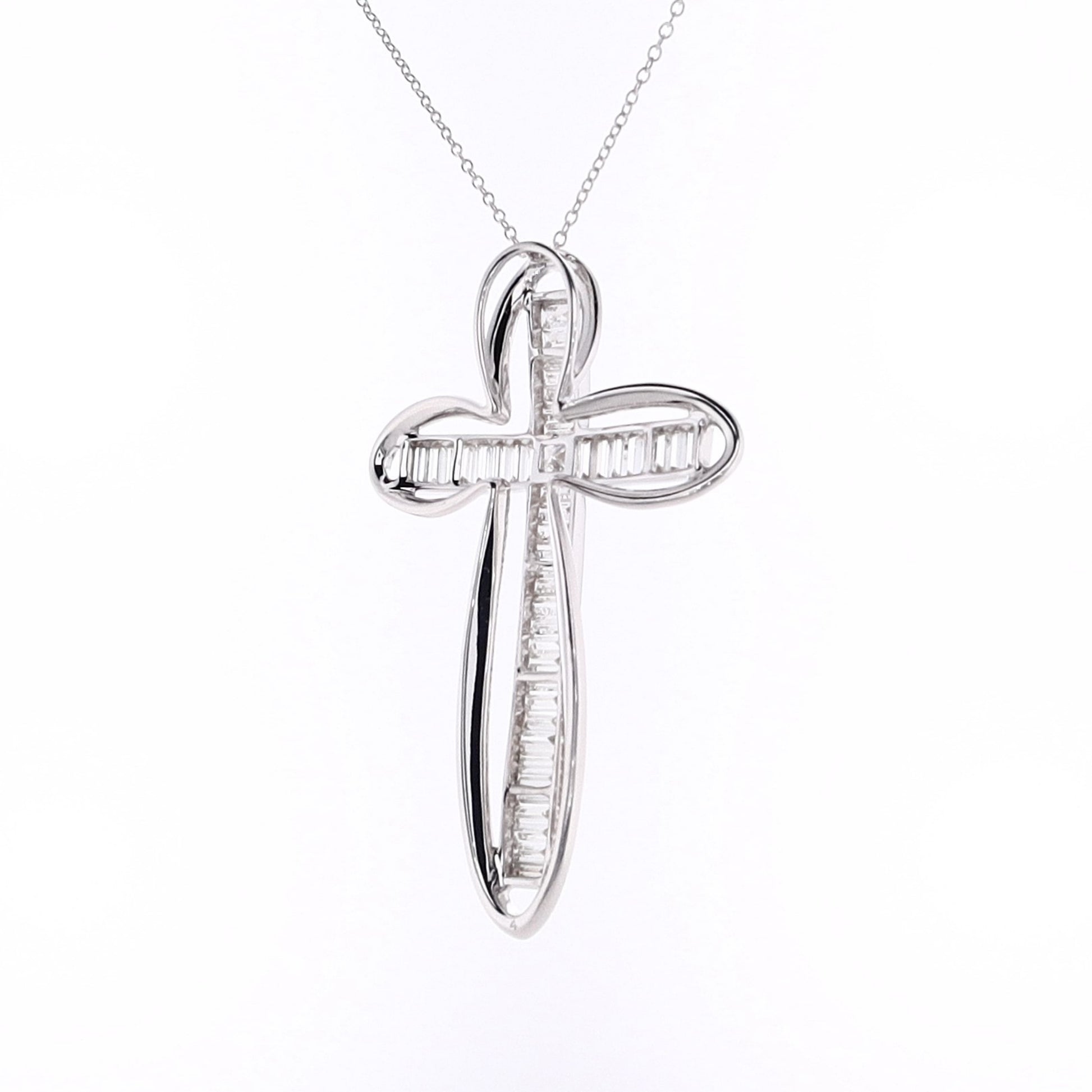 Estate 18 Karat White Gold Diamond Cross Pendant Necklace