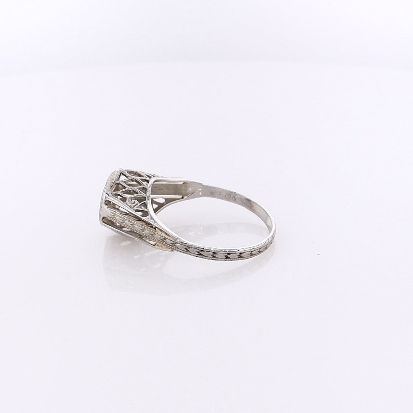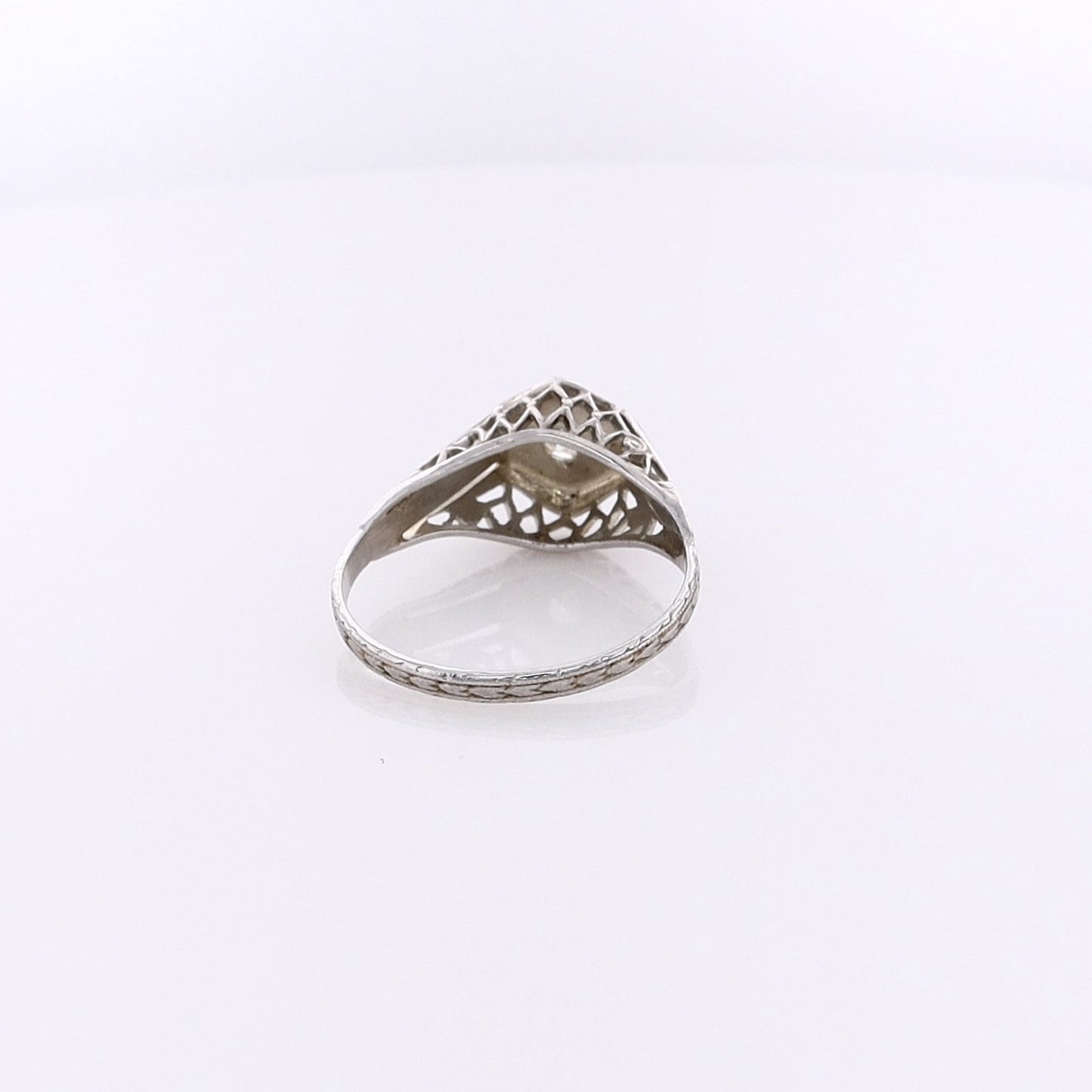 Estate 18 Karat White Gold Filagree and Diamond Ring