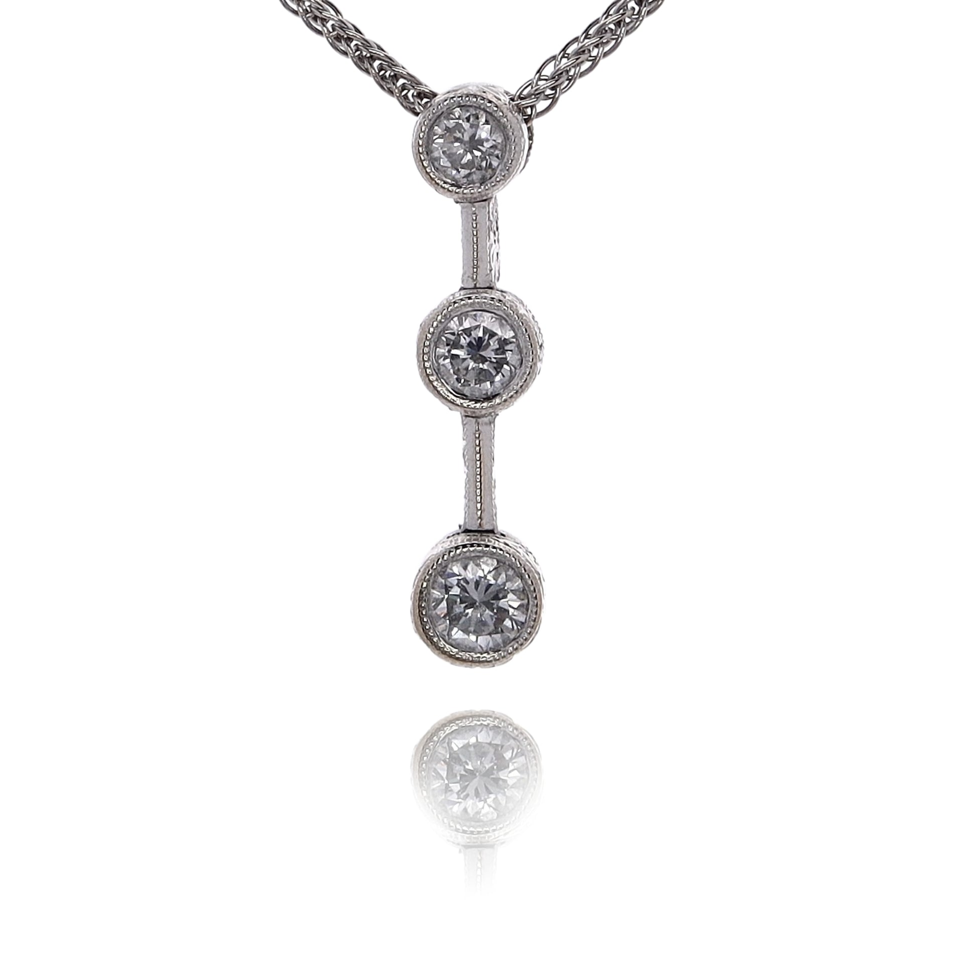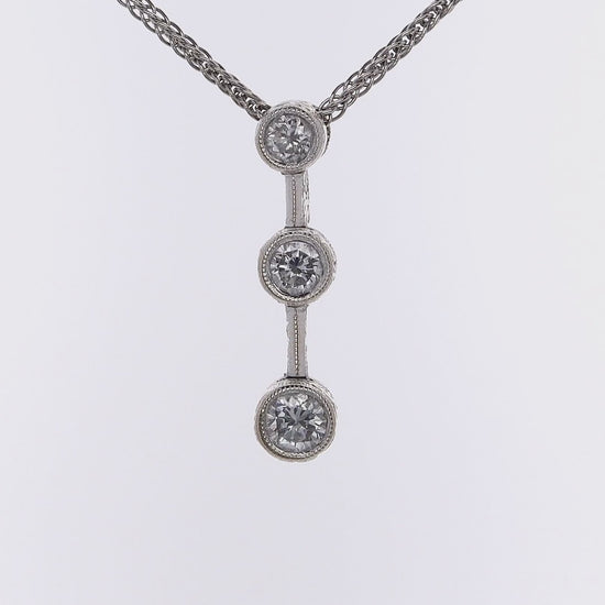 Estate 18 Karat White Gold Graduated Diamond Pendant Necklace