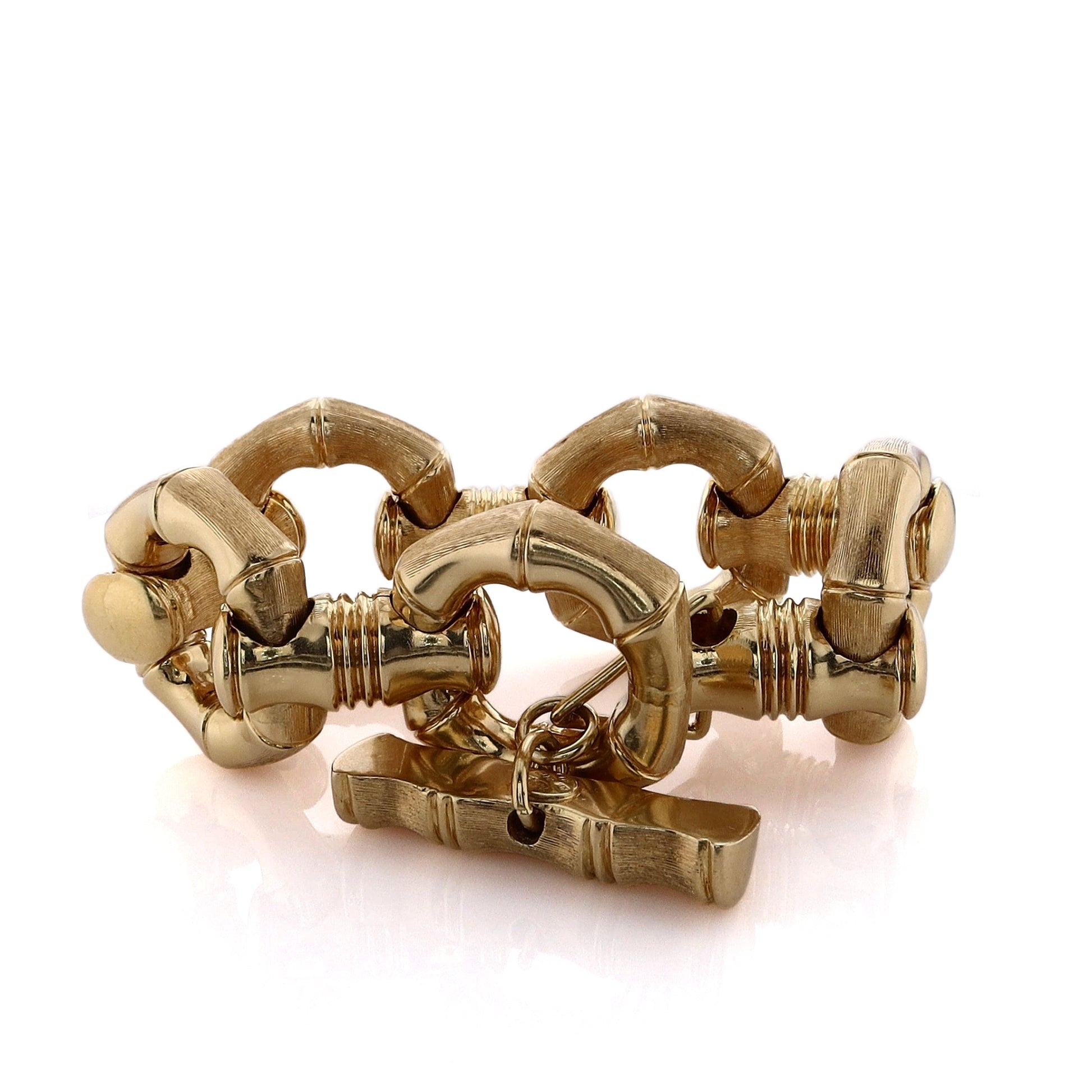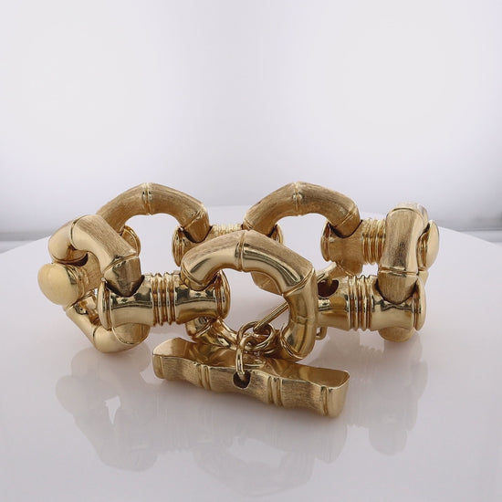 Estate 18 Karat Yellow Gold Heavy Bamboo Hexagon Link Bracelet With Large Toggle Clasp