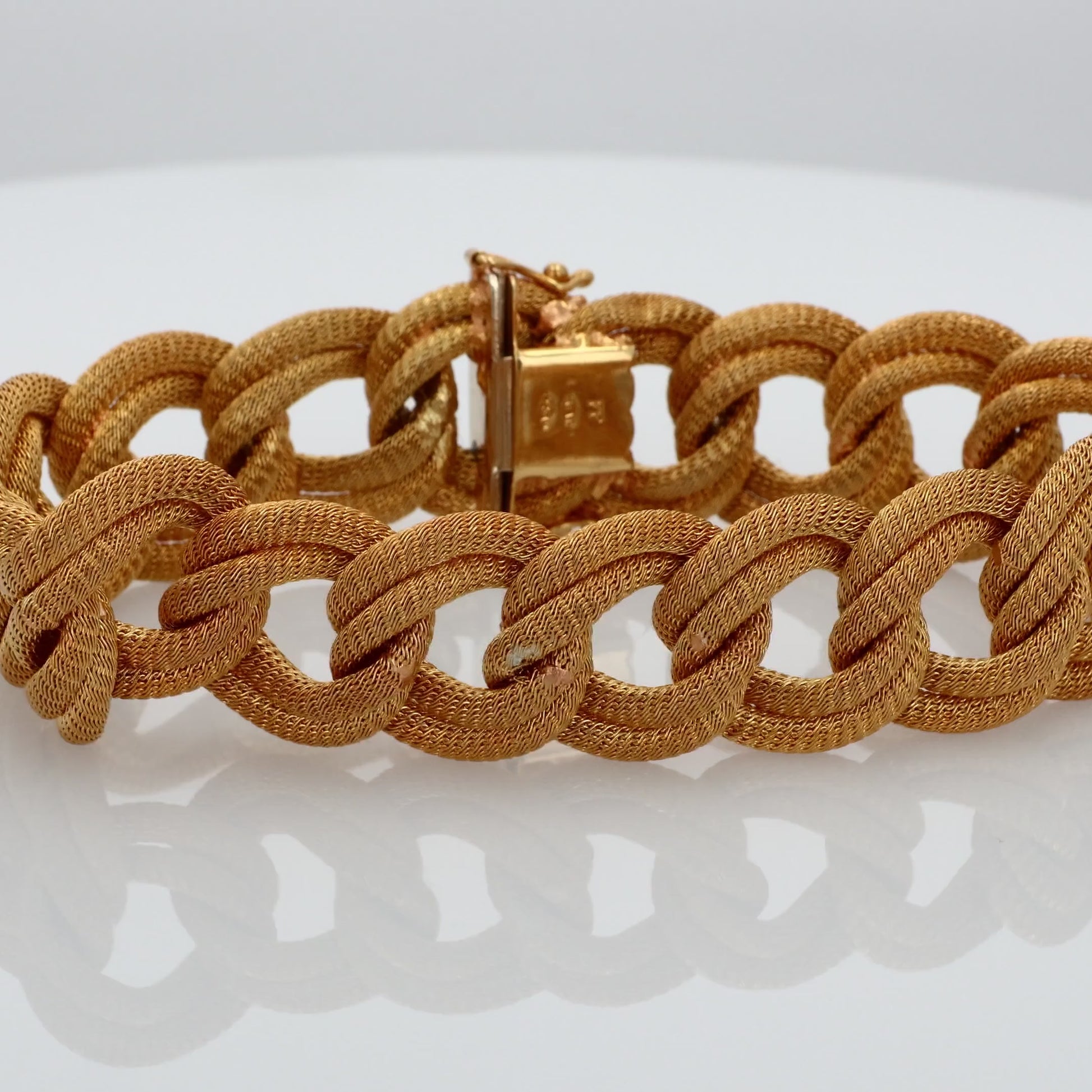 Estate 18 Karat Yellow Gold Interlocking Double Textured Oval Link Bracelet With Hidden Box Clasp