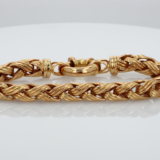 Estate 18 Karat Yellow Gold Thick Braided Design Bracelet With Large Spring Ring Clasp
