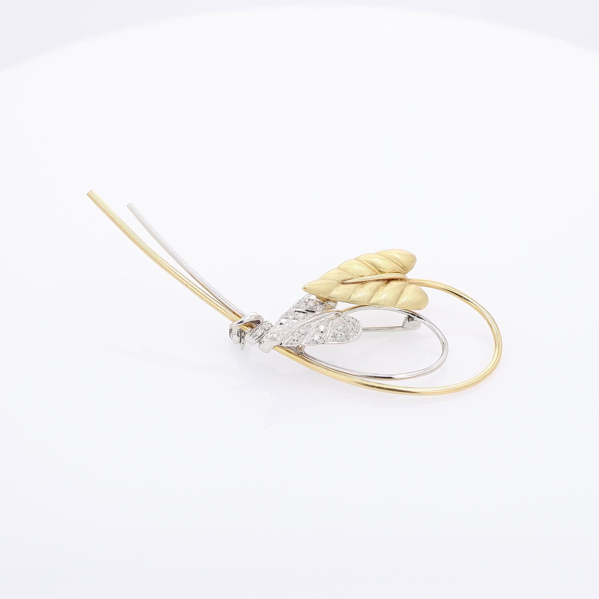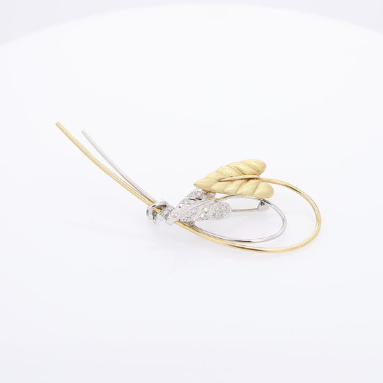 Estate 18k Two-Tone Brushed Leaf Design Diamond Pin