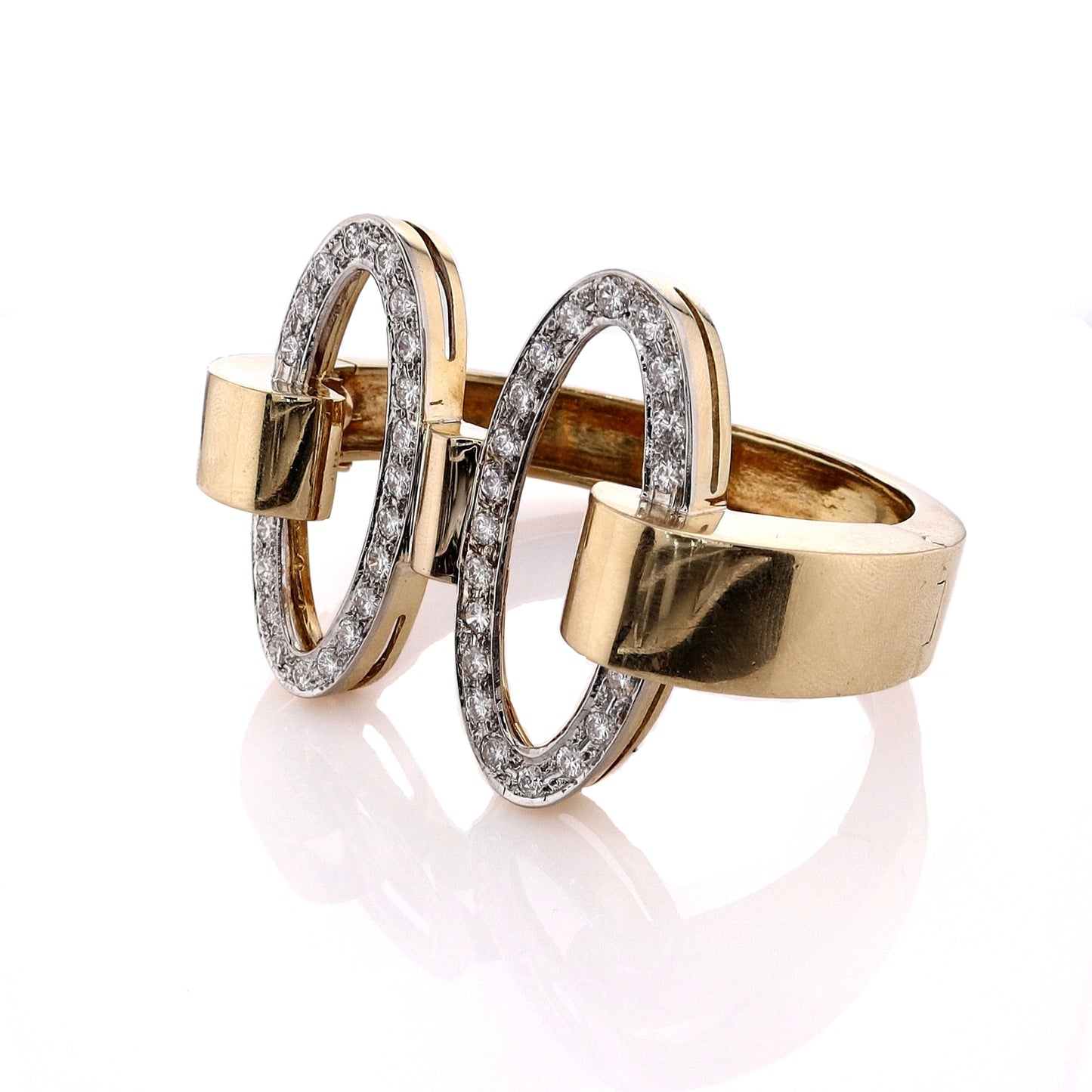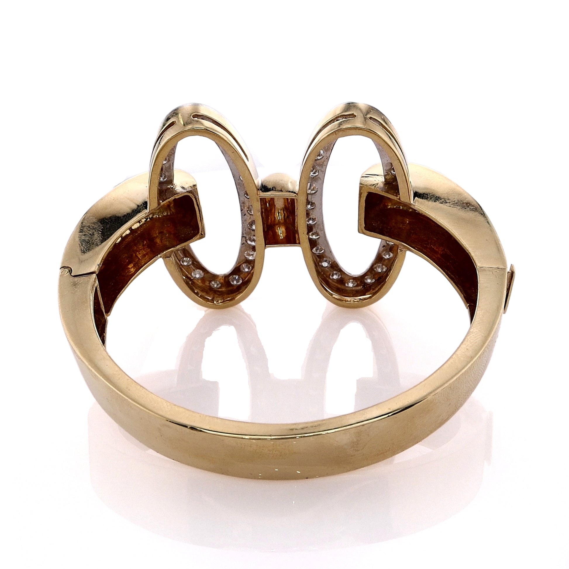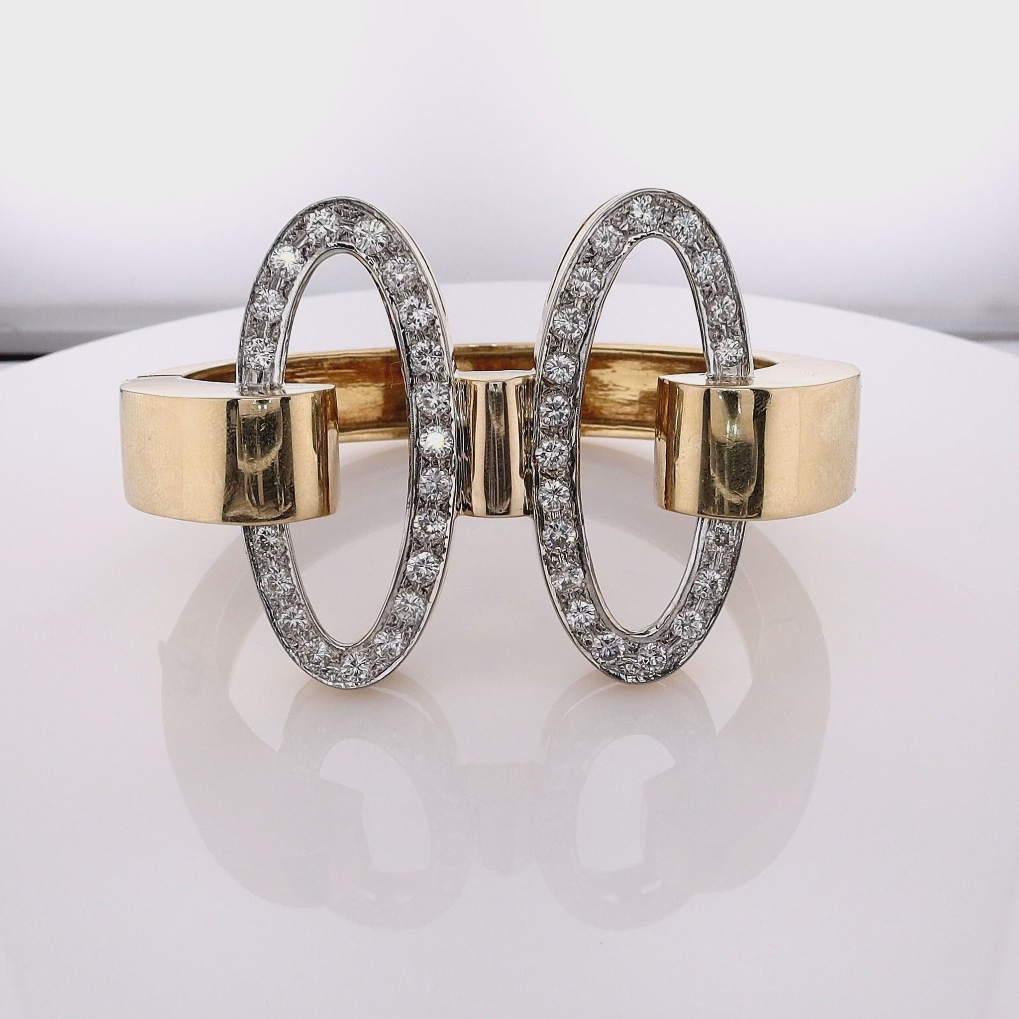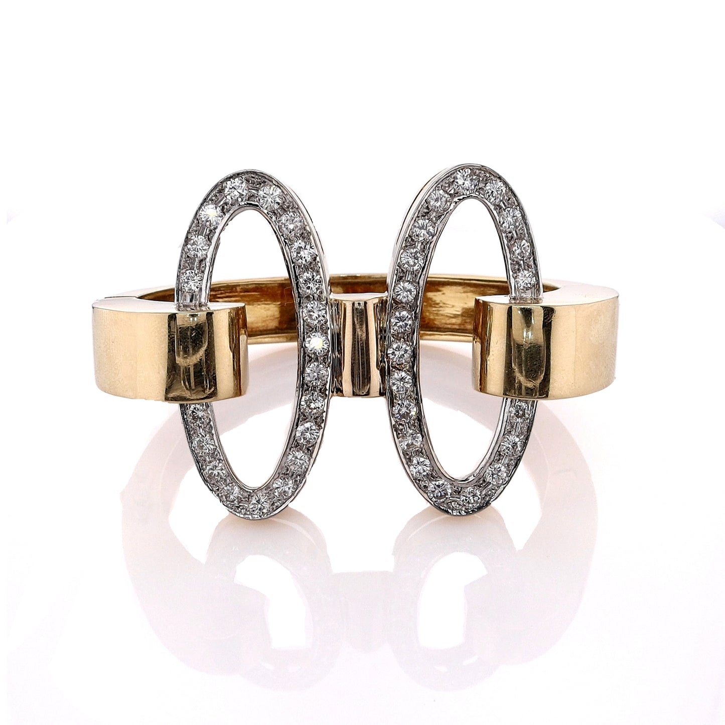 Estate 18k Two-Tone Diamond Large Oval Design Hinged Bangle Bracelet