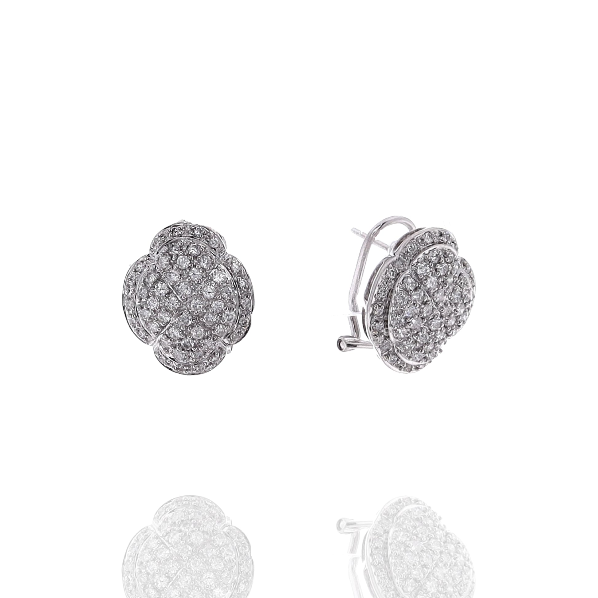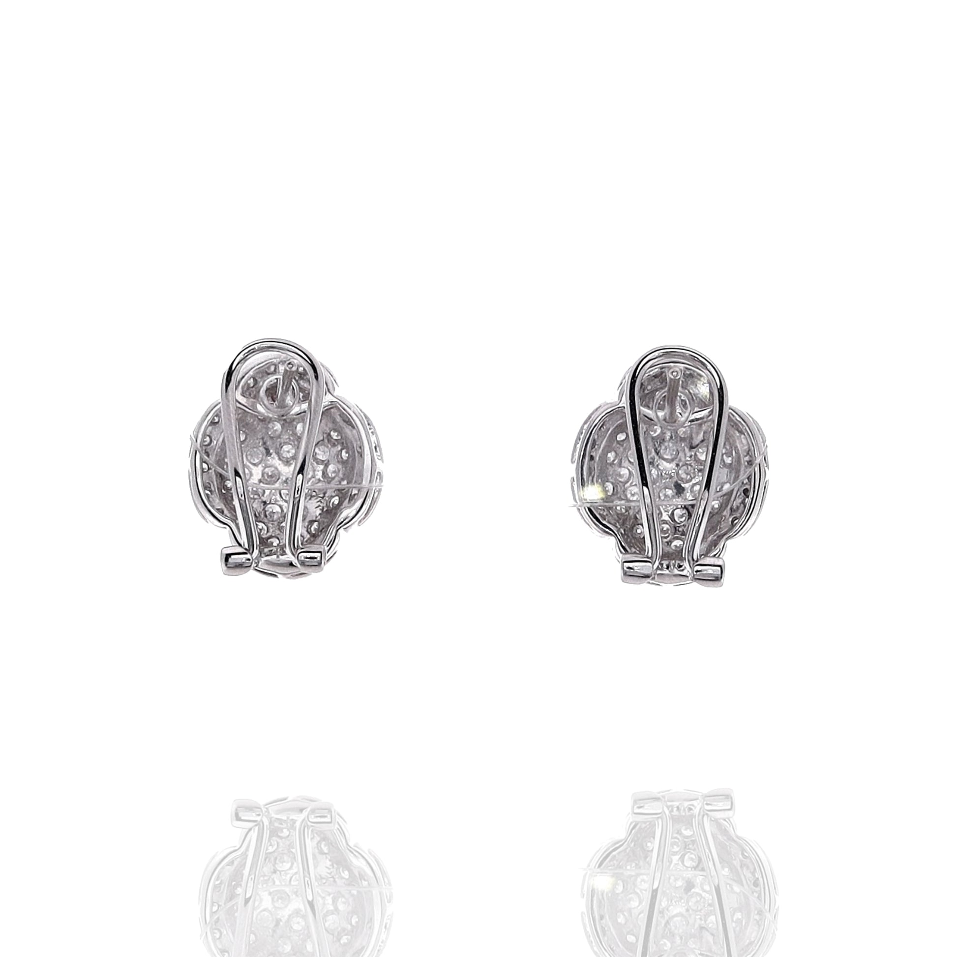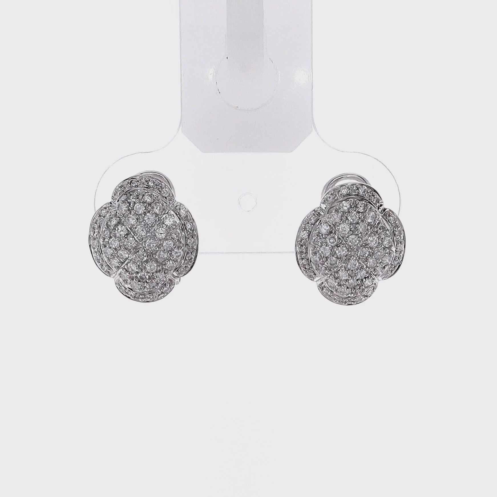 Estate 18k White Gold and Diamonds Clover Design Pierced/Clip-On Earrings