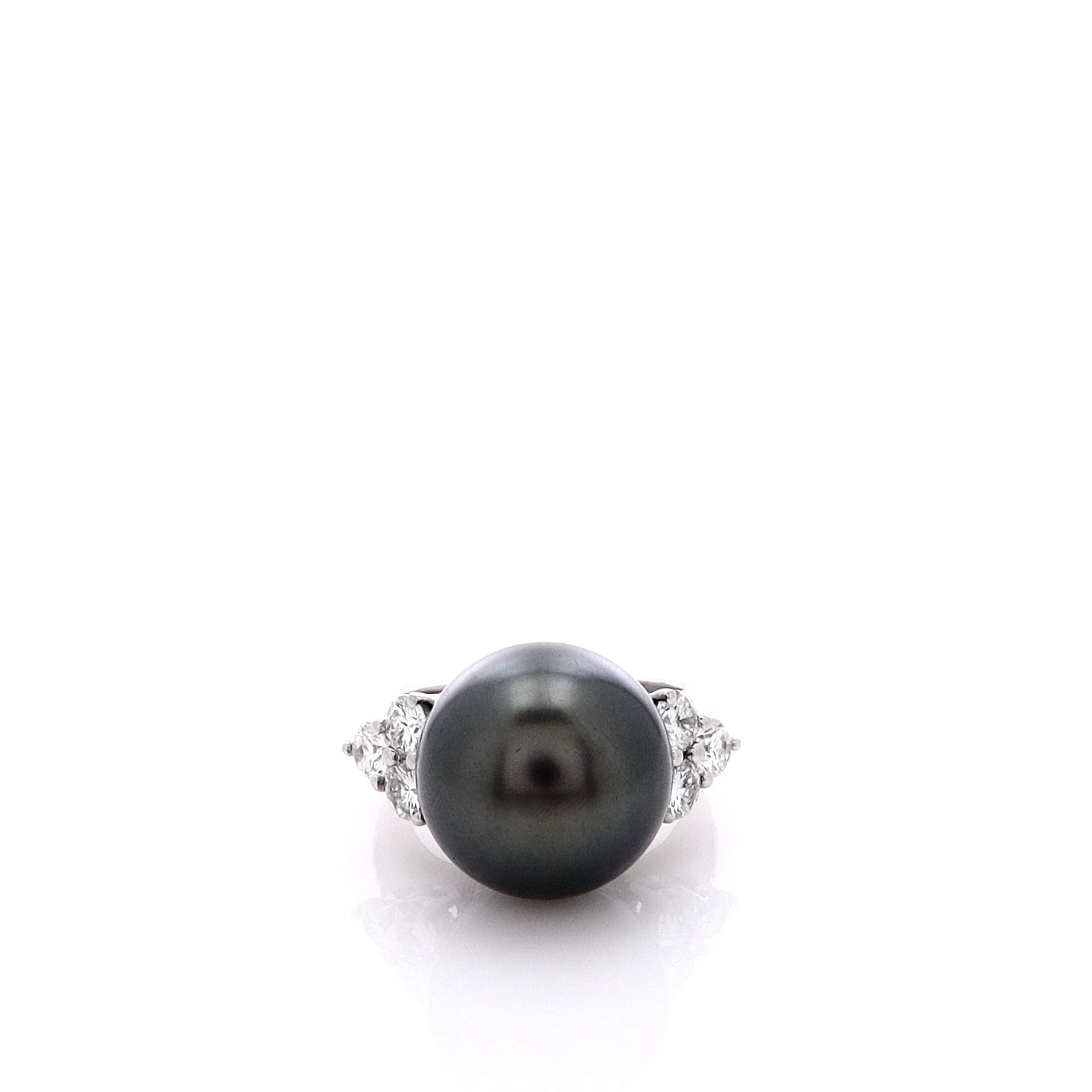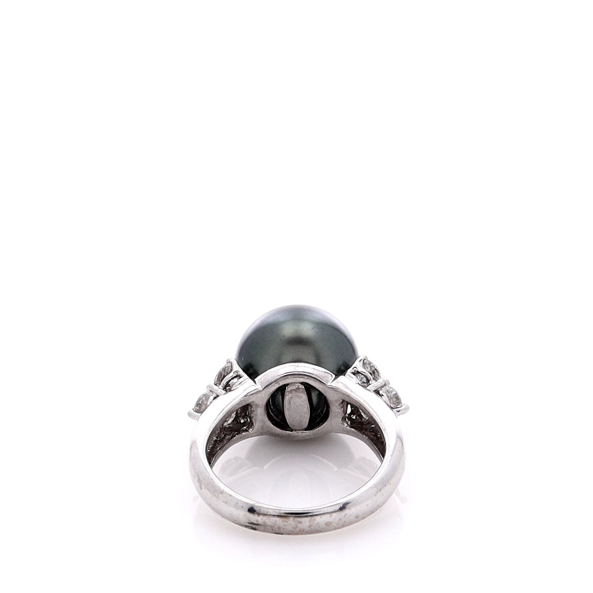 Estate 18k White Gold Diamond 13mm Grey Tahitian Pearl Ring
