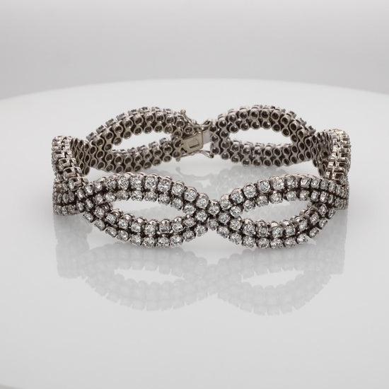 Estate 18k White Gold Diamond Wave Design 7.25" Bracelet
