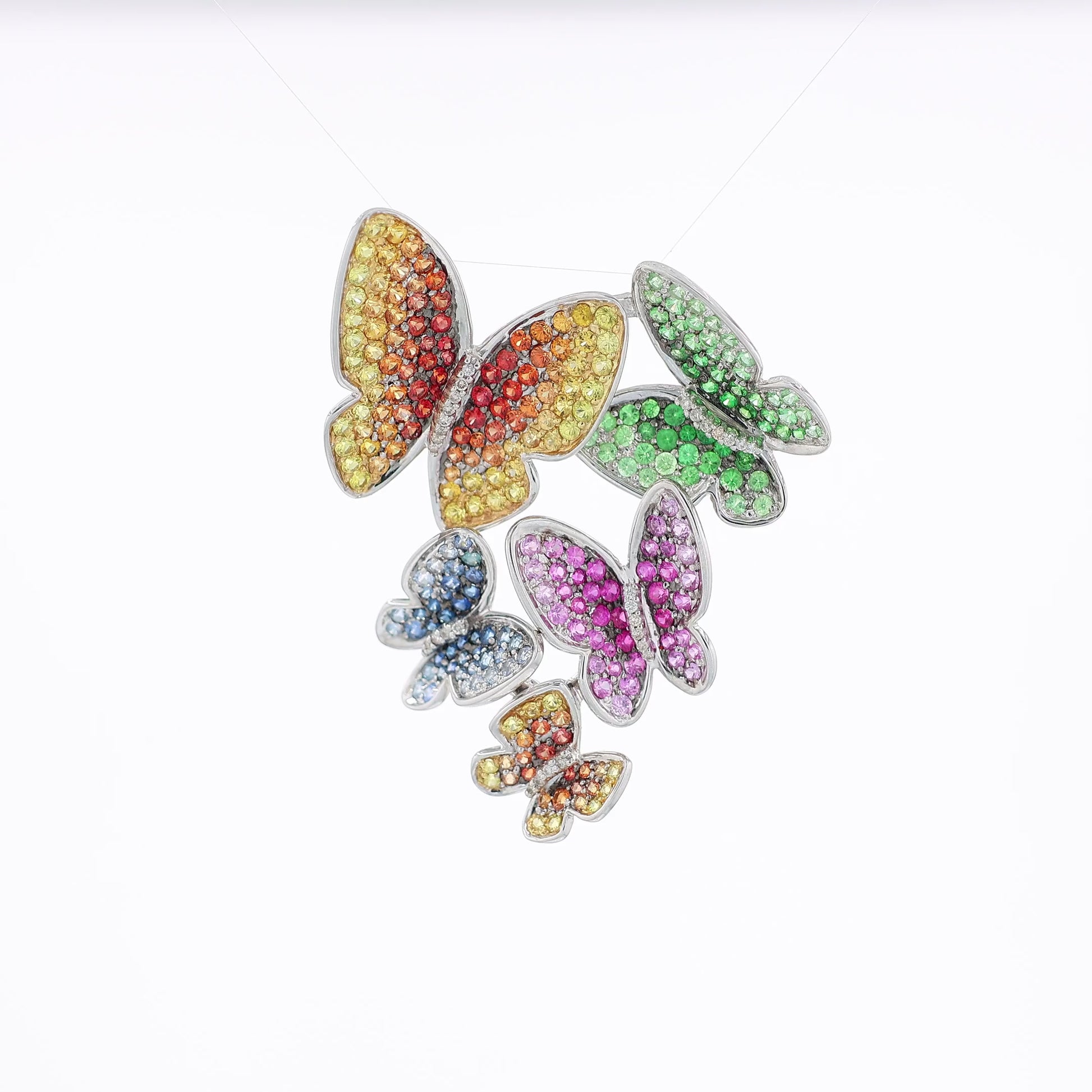 Estate 18k White Gold Multi Gemstone and Diamond Pave Butterfly Slide Pendant