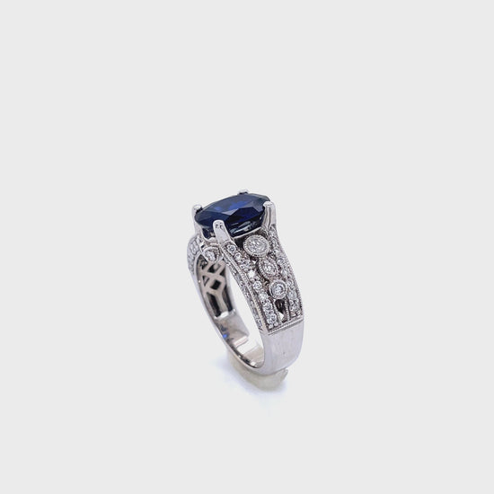Estate 18k White Gold Oval Sapphire and Diamond Split Shank Ring