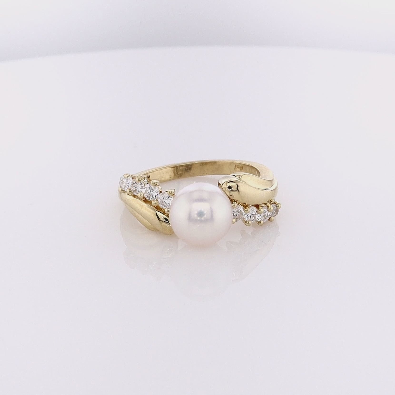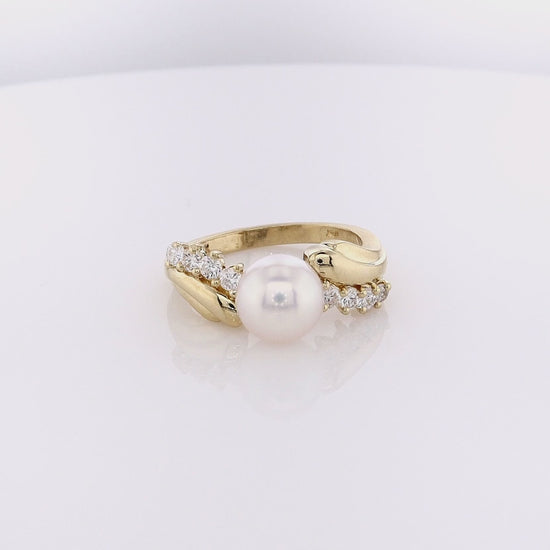 Estate 18k Yellow Gold Cultured Pearl Diamond Ring