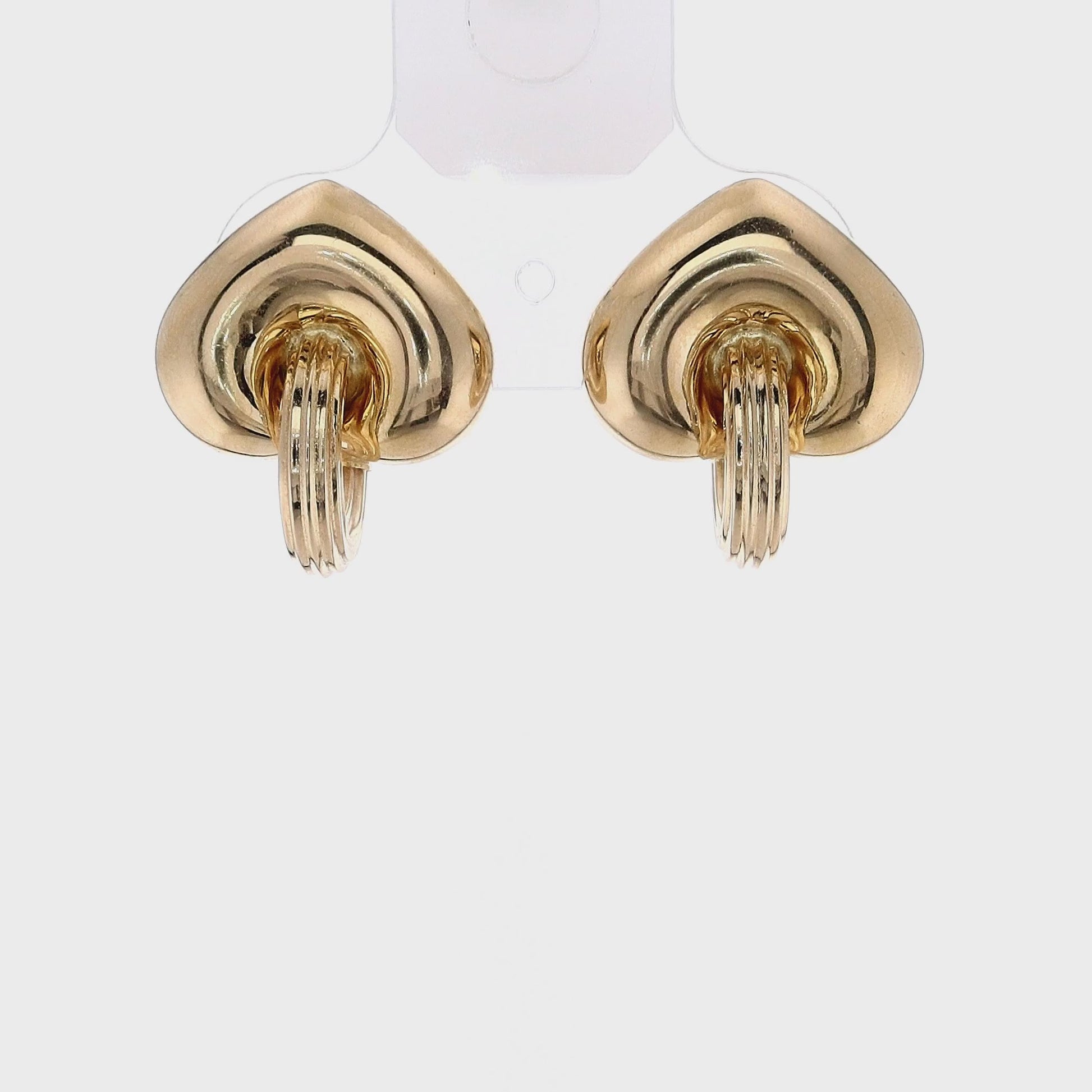 Estate 18k Yellow Gold Ribbed Spade Design Pierced/Clip-On Earrings